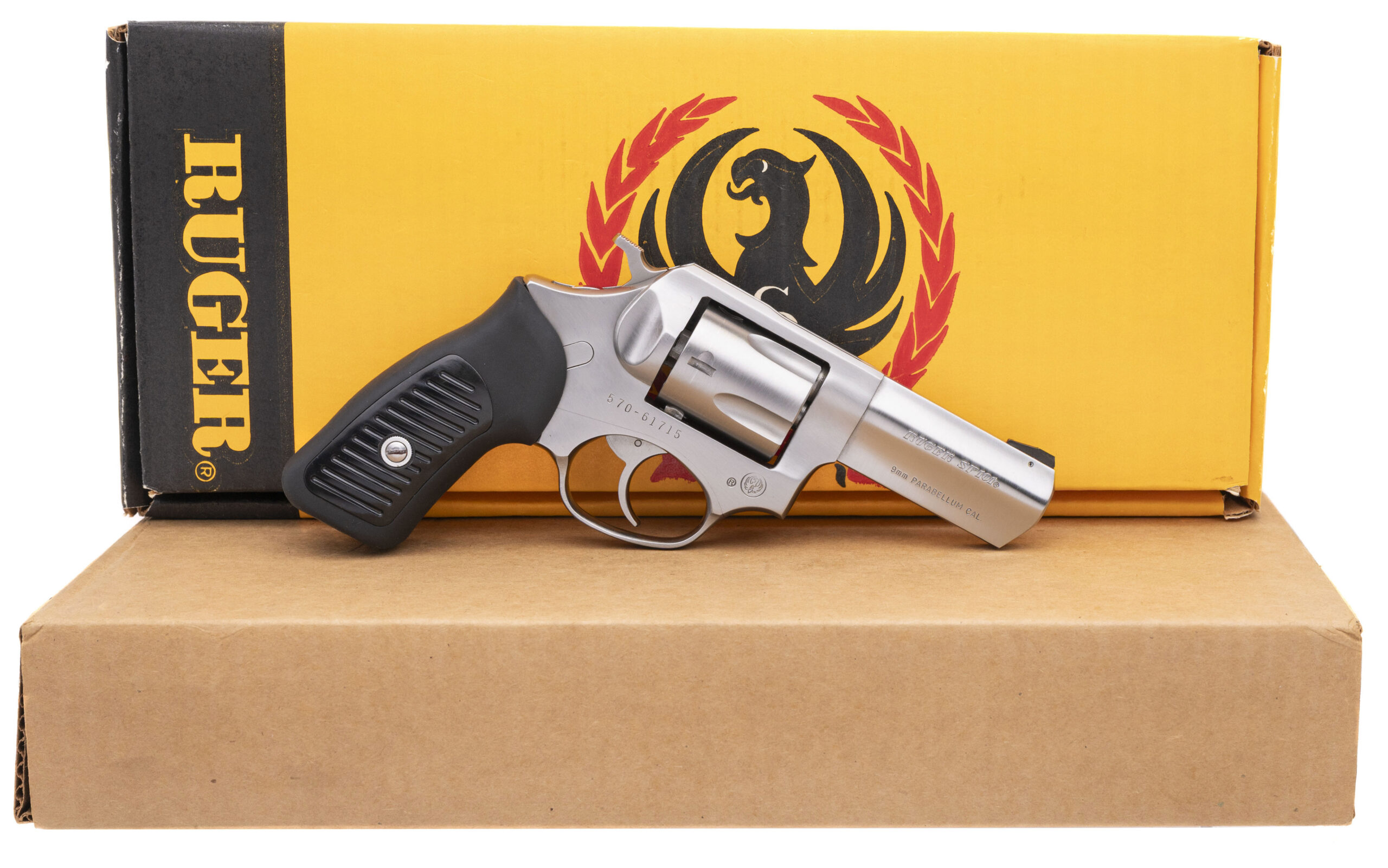 SN: 570-61715. Made in 1991, 9mm with a 3" barrel. Bore is excellent. Double-action stainless steel frame revolver with a 5rd cylinder, and rubber grips w/polymer inlays. Metal shows light marks. Overall condition is very good. Includes original box.