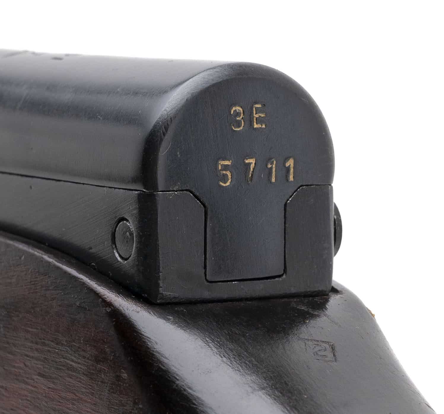 Serial No. 3E5711, made in 1954, 7.62x39, 20” round import marked barrel. Bore is bright and shiny with strong rifling noted. Serial numbers are matching, rifle is on overall very good plus condition with wear noted on the left side of the stock. Action is smooth and functions correctly, rifle comes with box, oilier and ammo pouch. Consignment