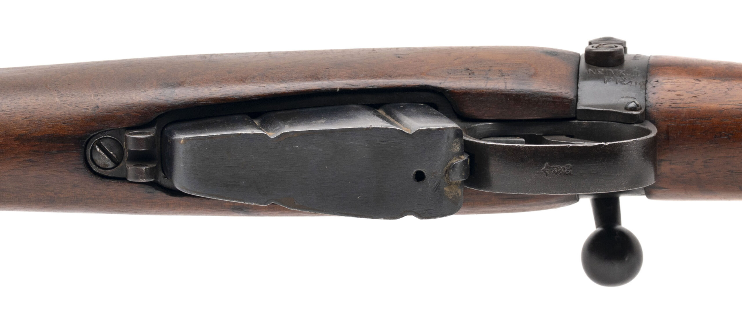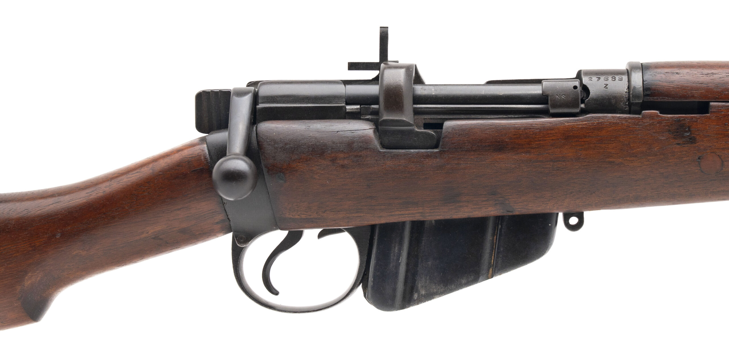 Serial No. 27689, made circa 1940s, .303 British, 20 ½” round barrel. This rifle is a Santa Fe Arms commercial conversion, reconfigured from a standard No. I Mk III Enfield into a “Jungle Carbine” style rifle for the surplus U.S. civilian market during the post-WWII period. It features a 20 ½” barrel with flash suppressor, and retains matching serial numbers on the bolt and receiver. The magazine is unmarked. The metal surfaces have worn to a dull grey patina, consistent with field use and age. The barrel is import marked. The stock is in good condition, showing light handling wear and minimal impressions. The action is smooth and functions correctly.