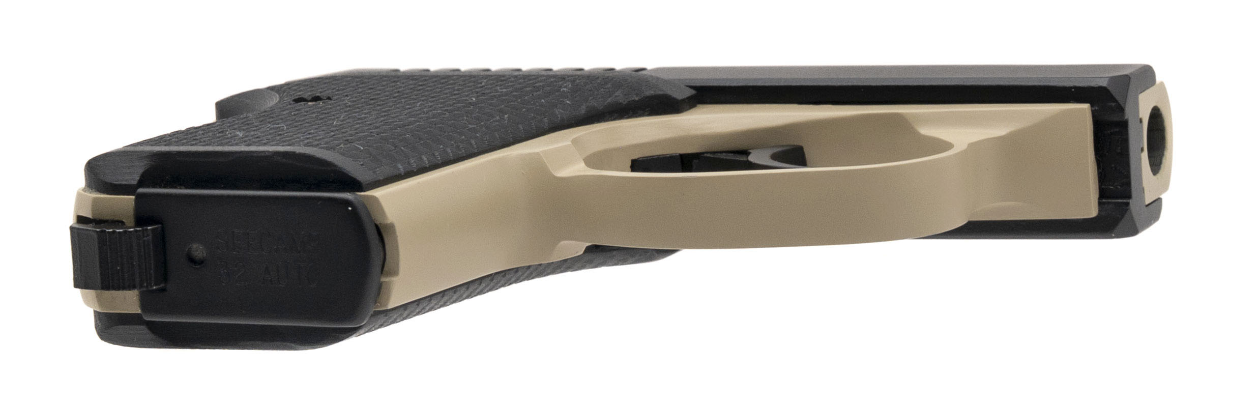 SN: JW9752. Modern production .32 ACP with a 2" barrel. Top quality pocket pistol with 2-tone black and sand Cerakote finish. Excellent condition with box and manual.