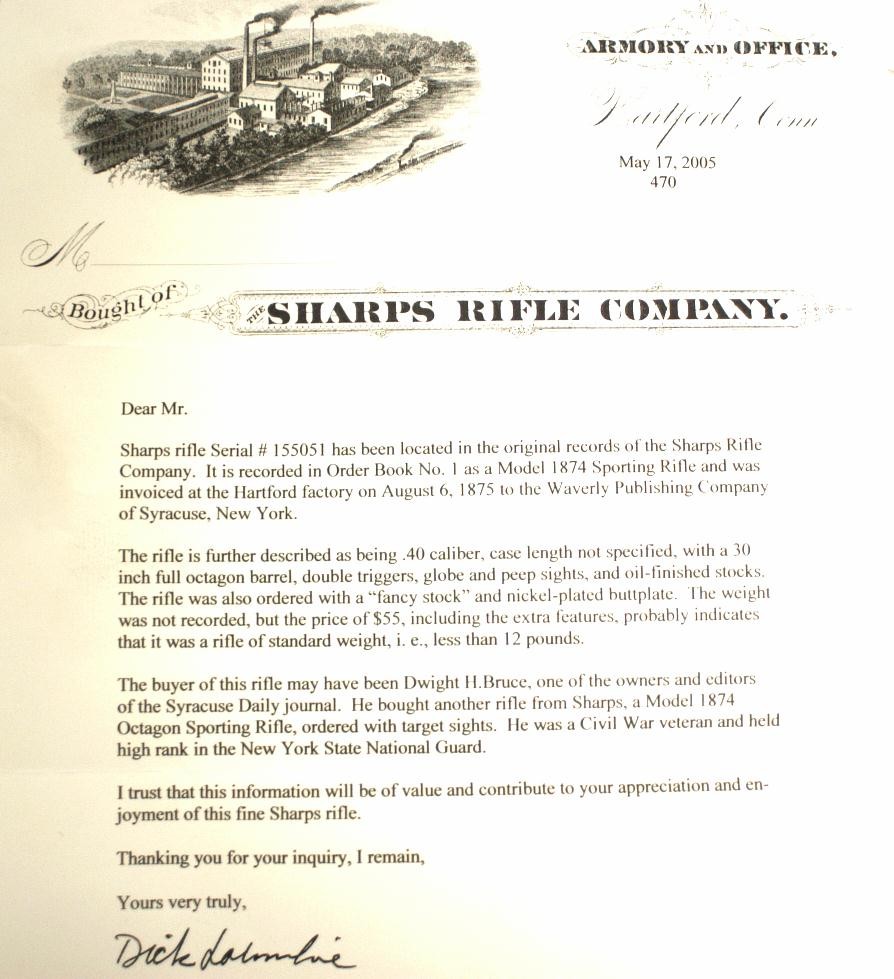 Sharps 1874 Sporting rifle with 80% original blue. Nice sharp gun. Buttstock and tang are replaced but are original Sharps parts.