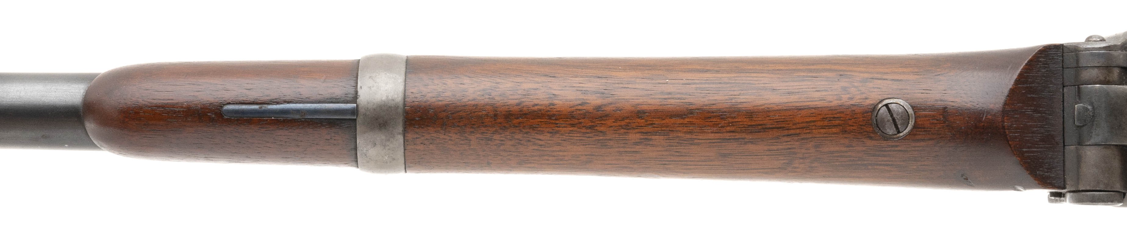 Serial number 51645. Made circa 1860s. 50-70 caliber with a 22” barrel. This gun is in excellent condition with 98% of the original blue on the barrel. The frame has excellent case colors. Wood is excellent with sharp cartouches. This gun is near new! This gun was originally made in percussion and arsenal refurbished during the Indian wars.