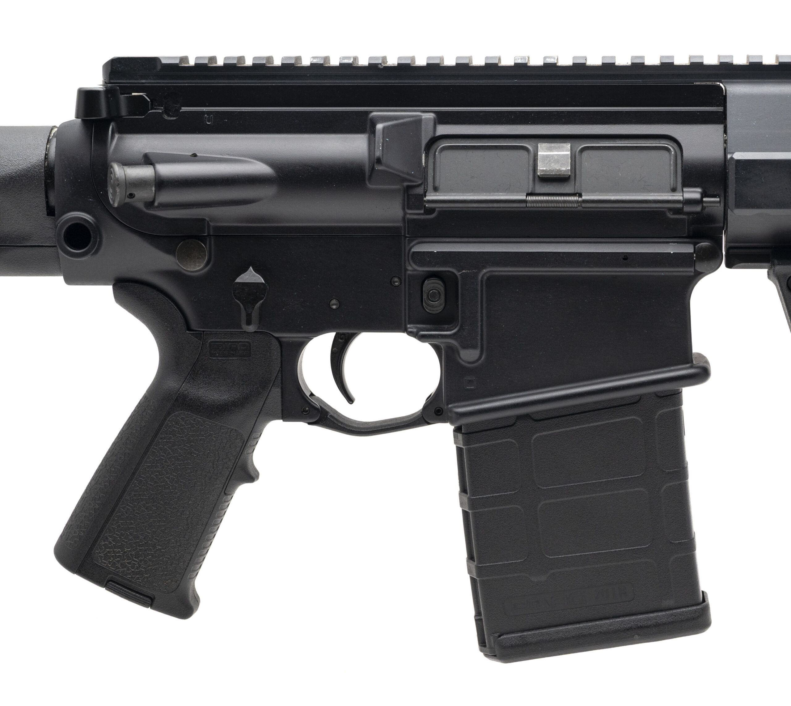 SN: 23D014781. Modern production. Semi-automatic tactical rifle made by Sig. 18" threaded bull barrel chambered for 7.62 NATO. Great overall condition with some handling marks in the black anodized finish. Features short-stroke gas piston action, monolithic quad rail handguard and optics mount, and Faxon 3-port muzzle brake. Comes with mounted angled foregrip, bipod and original box.