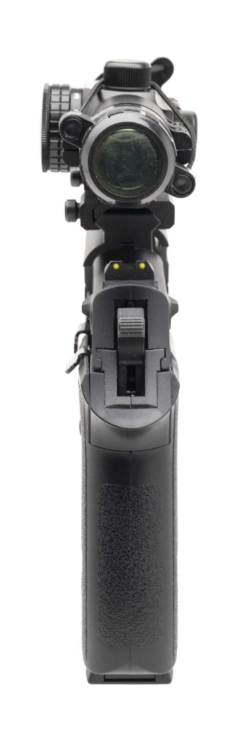 SN: A045524. 2007 production, .22 with a 5" barrel w/compensator. Bore is bright. German made double action rimfire pistol with a Sig Sauer red dot scope w/Sig mount. Excellent condition overall.