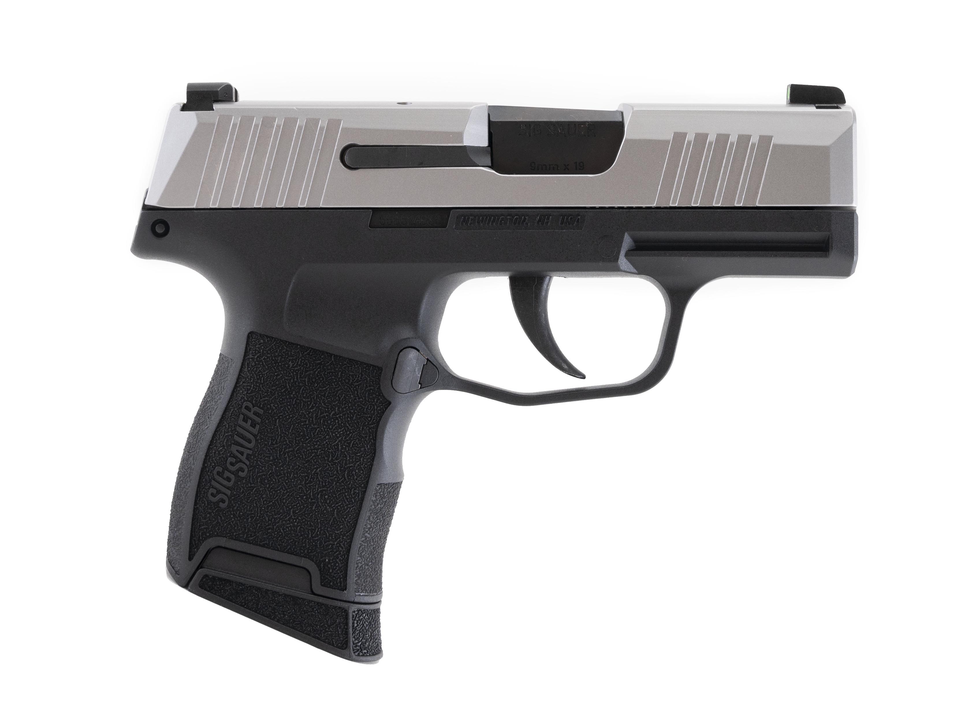 3.1" two-tone, modular, sub-compact pistol with green x-ray night sights. Rated for +P ammo. Includes a spare 10RD magazine. NEW. UPC:798681614912.