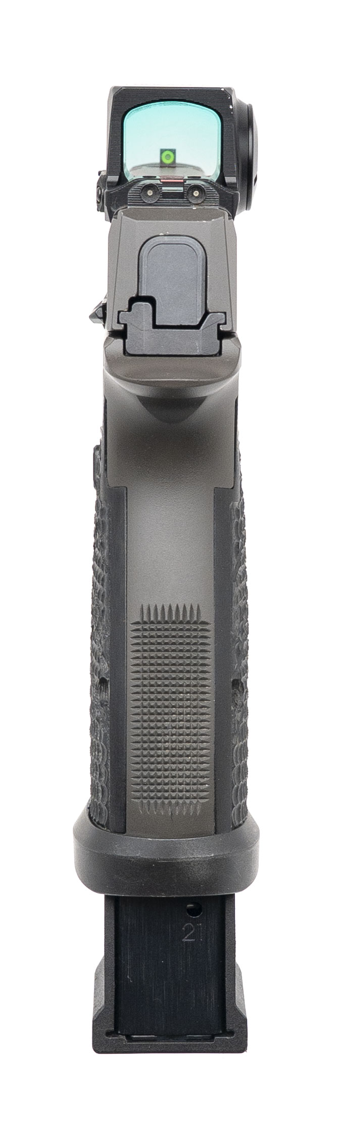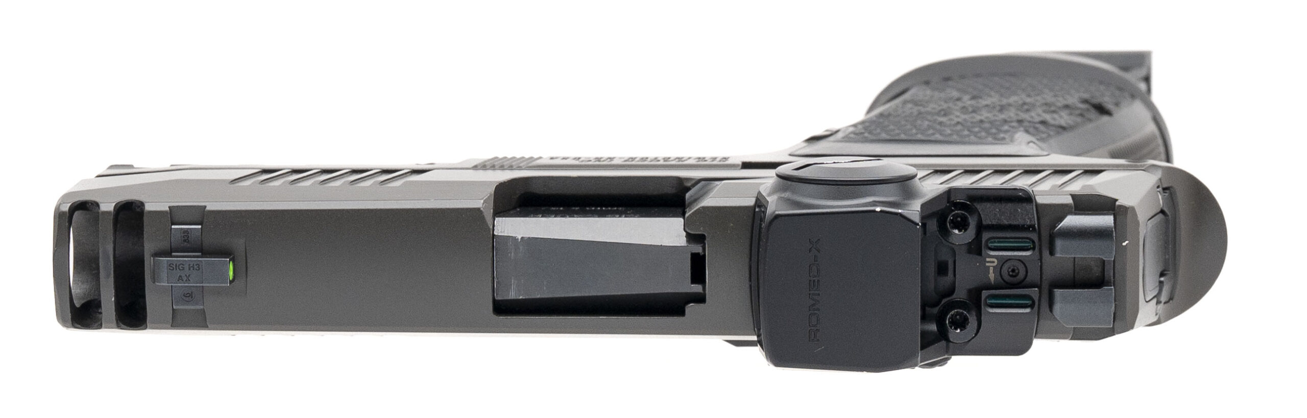 SN: 66G680945. Modern production, 9mm with a 3.1" barrel w/compensator. Bore is excellent. Sub-compact steel frame striker-fired pistol with a Sig Romeo-X Compact red dot sight, XRAY 3 day/night sights, accessory rail, legion gray cerakote finish, and G10 grips. Finish shows minor holster wear. Includes 3 additional 17rd magazines, and original case. Overall condition is very good.