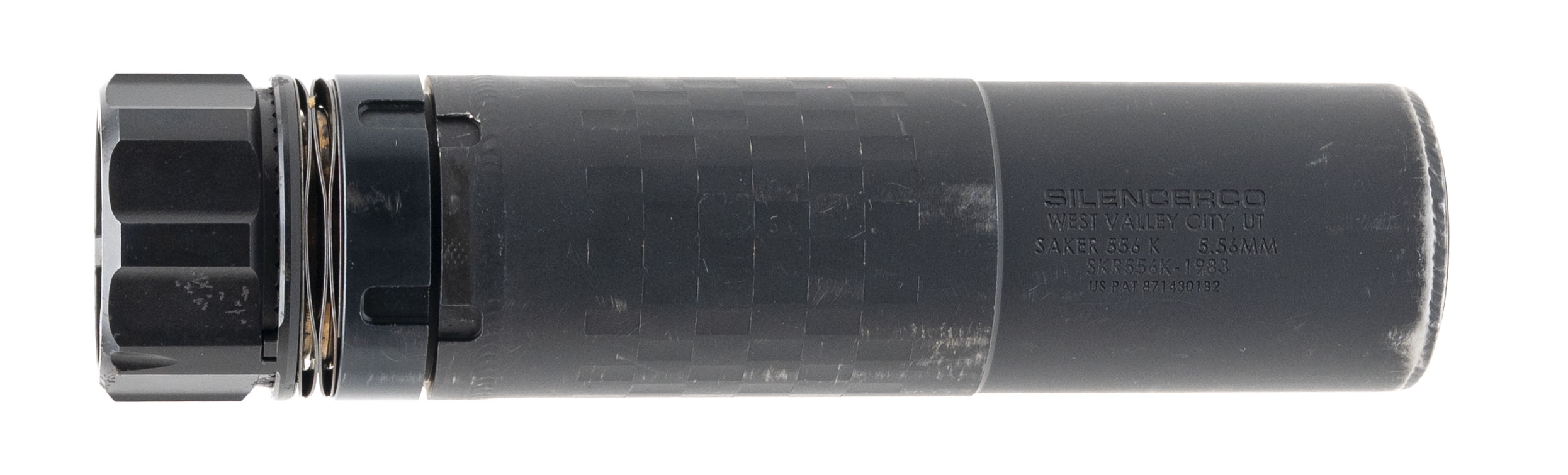 SN: SKR556K-1983. Modern production, 5.56 NATO Suppressor with QD Mount. Overall Length of 5.9”, Diameter of 1.50", and Weighs 14.3 OZ. Overall Condition is Very Good. (CLASS III ITEM)(ALL NFA RULES APPLY)