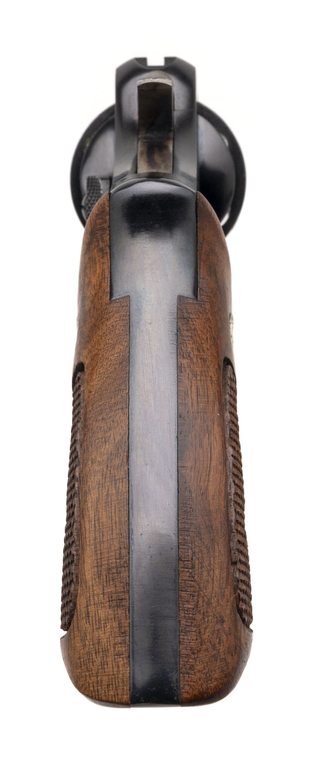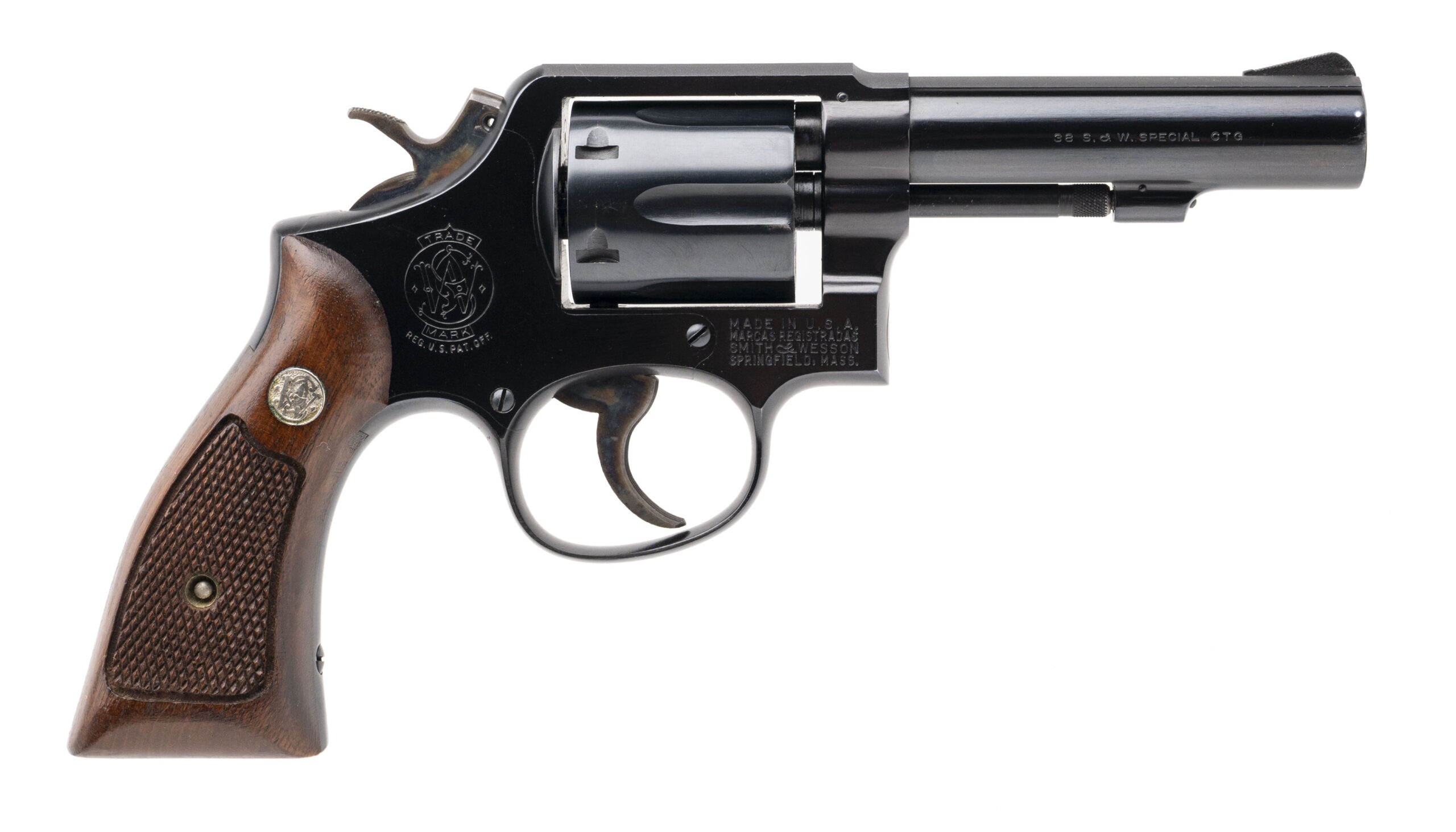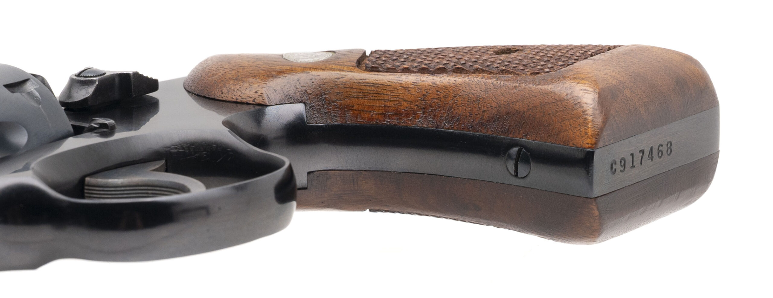 SN: C917468 made circa 1960’s. S&W K frame 38 special double action revolver with a 4” pinned barrel, 6 shot fluted cylinder with trench sights, blued finish with walnut grips and case hardened hammer and trigger. Overall in excellent condition for the age.