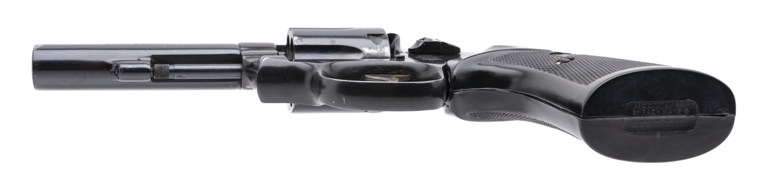 SN: 8D25121. 1981 production, .38 Special with a pinned barrel. Bore is very good. Blue k-frame revolver with Pachmayr grips. Metal shows wear with most of the blue finish present. Overall condition is very good.