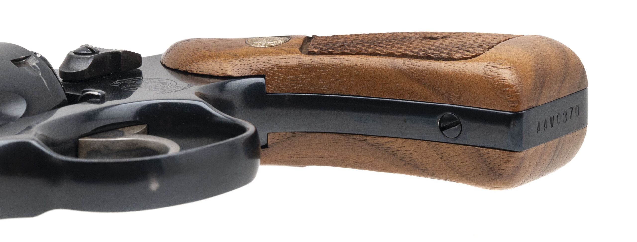 SN: AAW0370 made circa 1980’s. Double action round butt K frame revolver chambered in 357 magnum with a 3” barrel, trench sights, blued finish with checkered walnut grips. Overall in very good condition with an excellent bore.