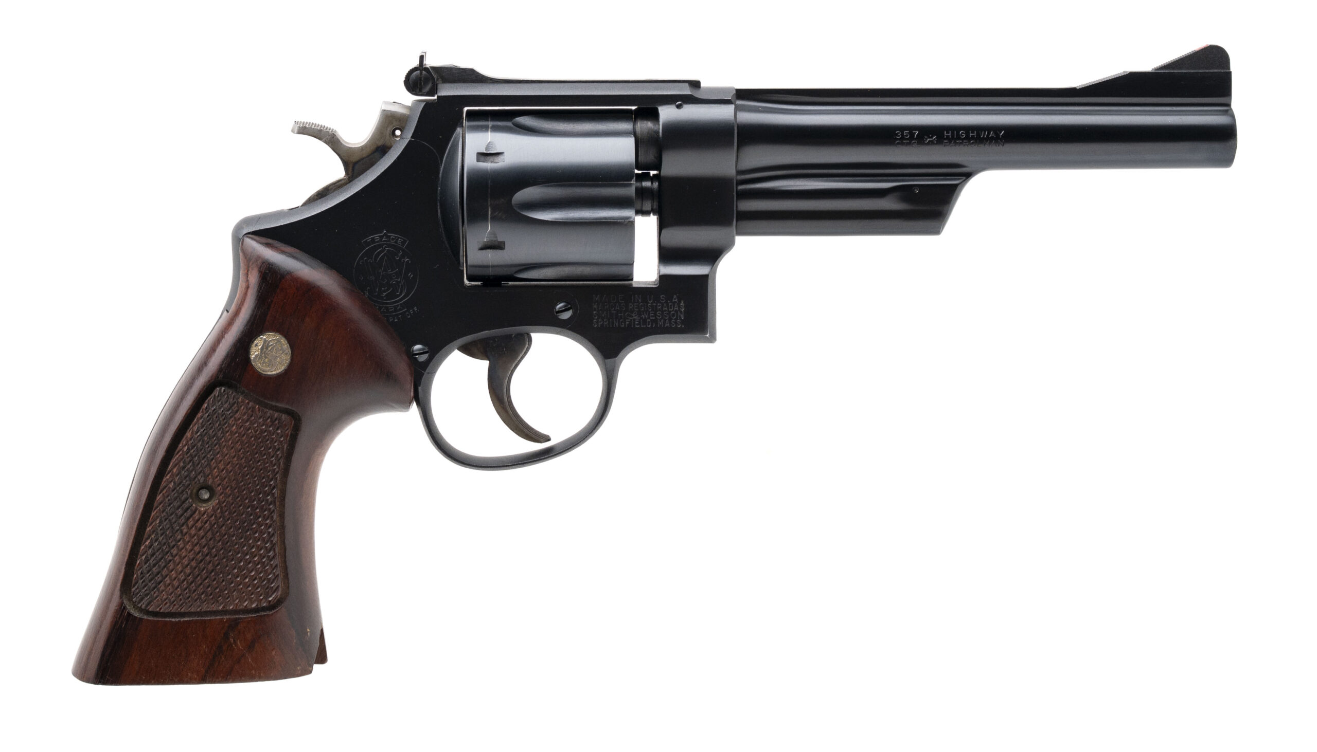 SN: S262296. Made in 1962, .357 Magnum with a 5.875" barrel. Blued N-frame revolver, pinned & recessed. Has a chip in the wood of the right grip, overall condition is very good.