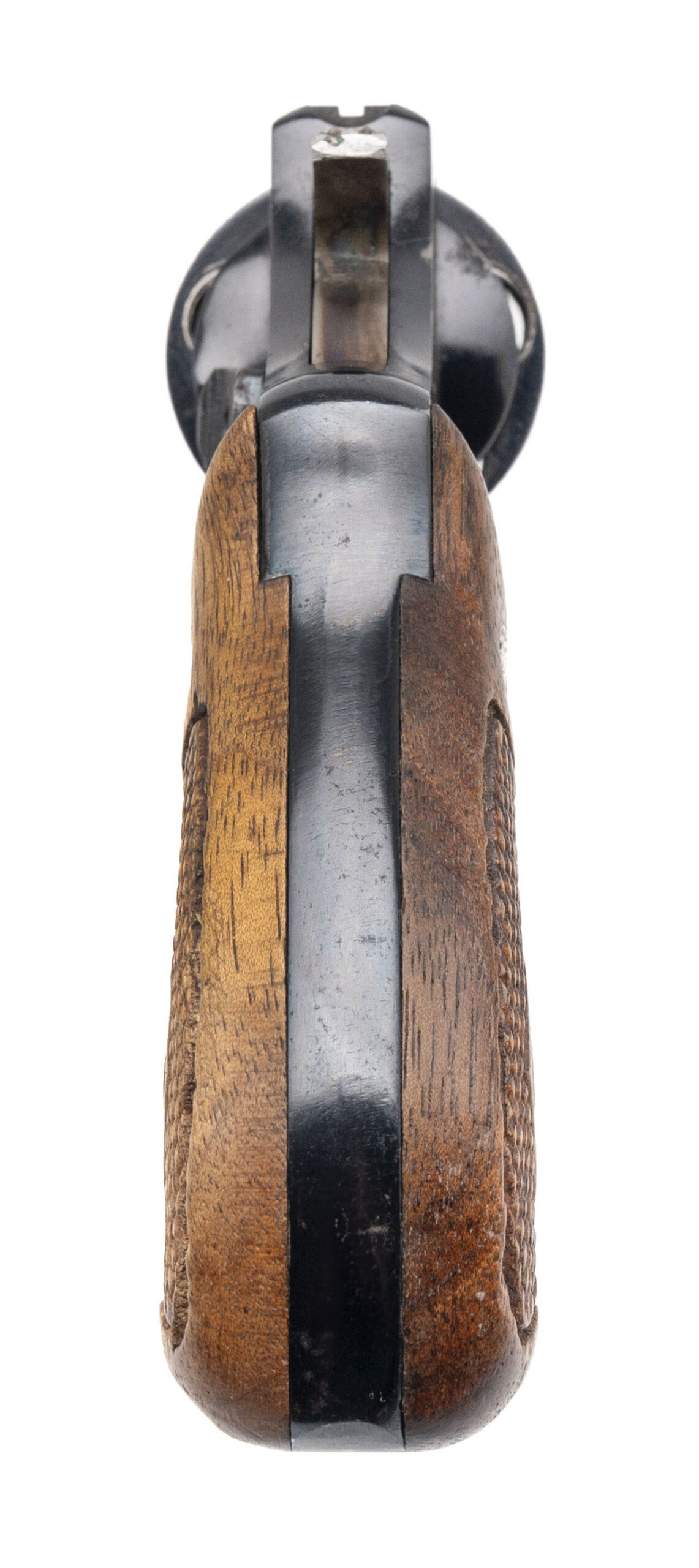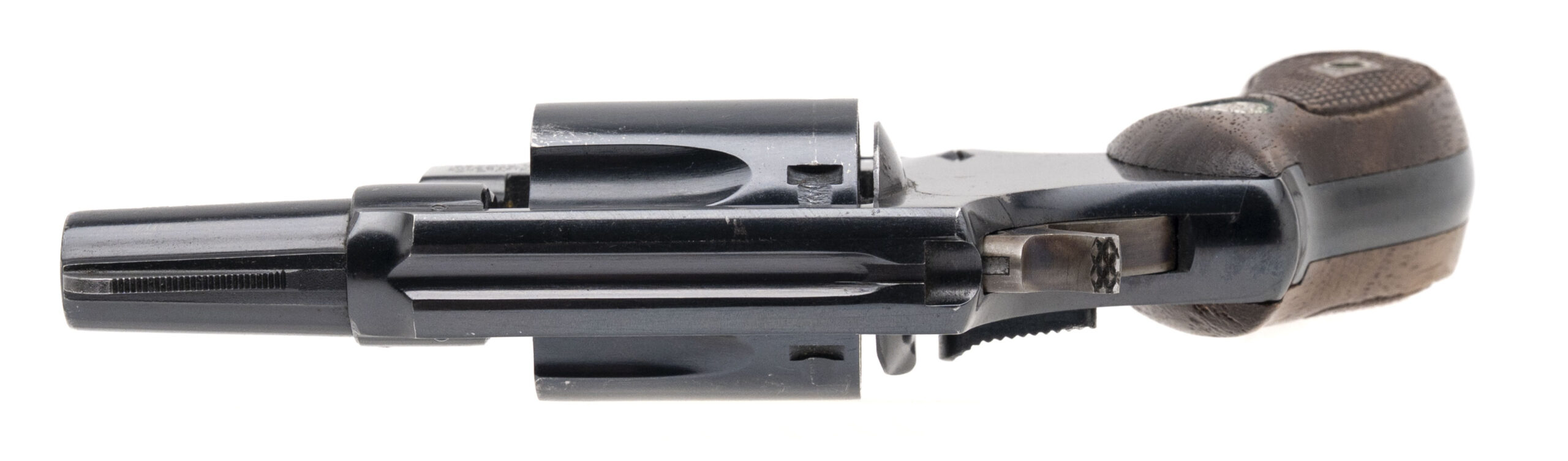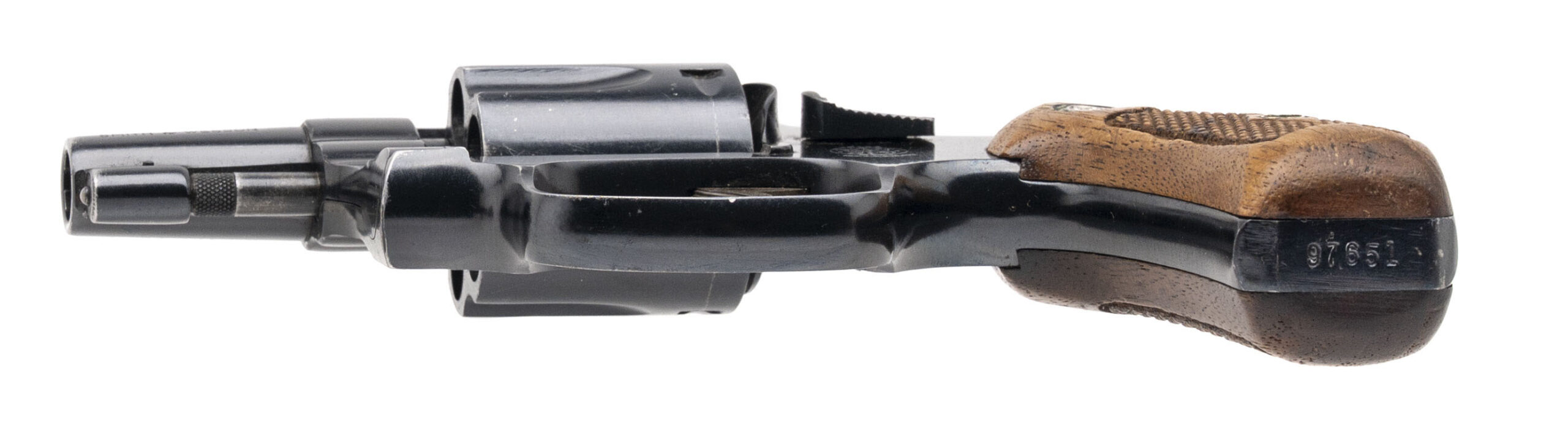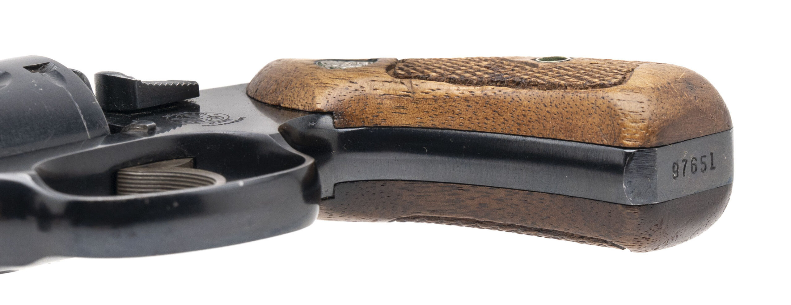 SN: 97651. 1960's vintage .38 S&W with a 2" barrel. "Terrier" snubnose revolver with flat latch. Has most of the original blue finish with a small spot of patina on the side plate and the hammer spur has been slightly bobbed. A scarce model, in overall good condition with some light wear.