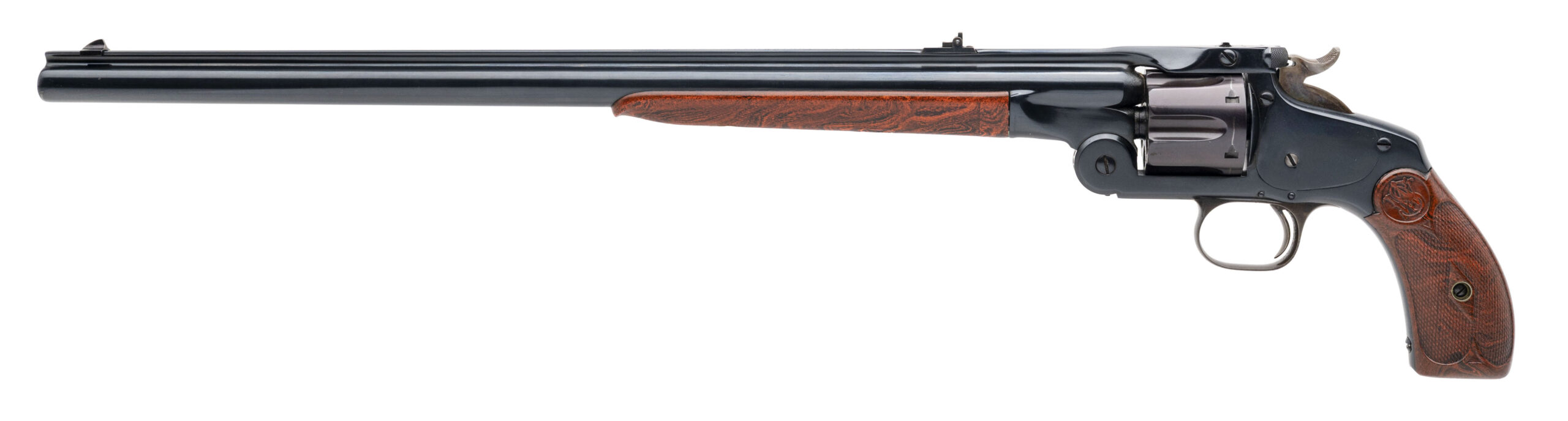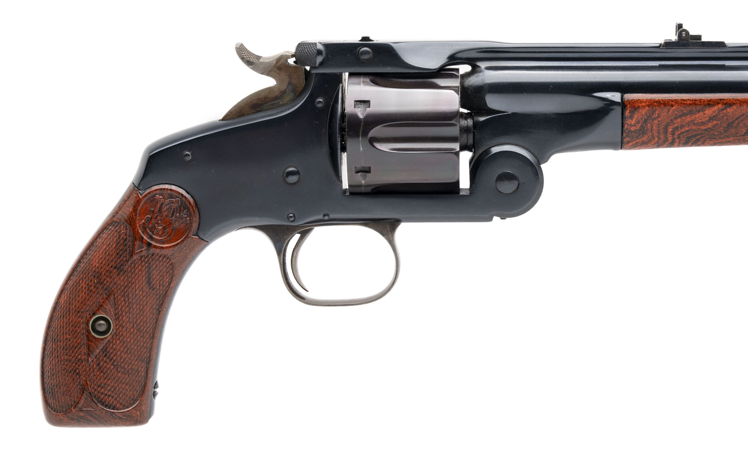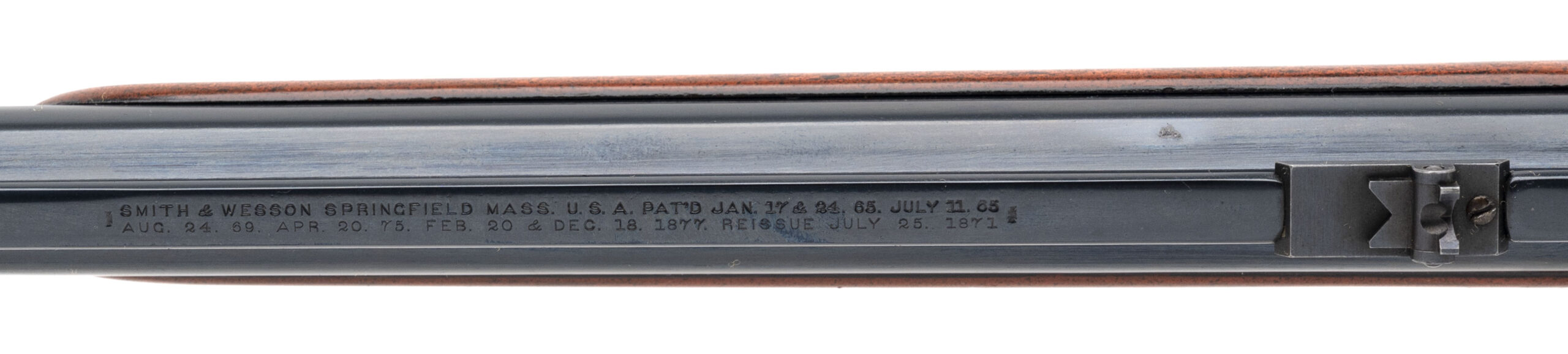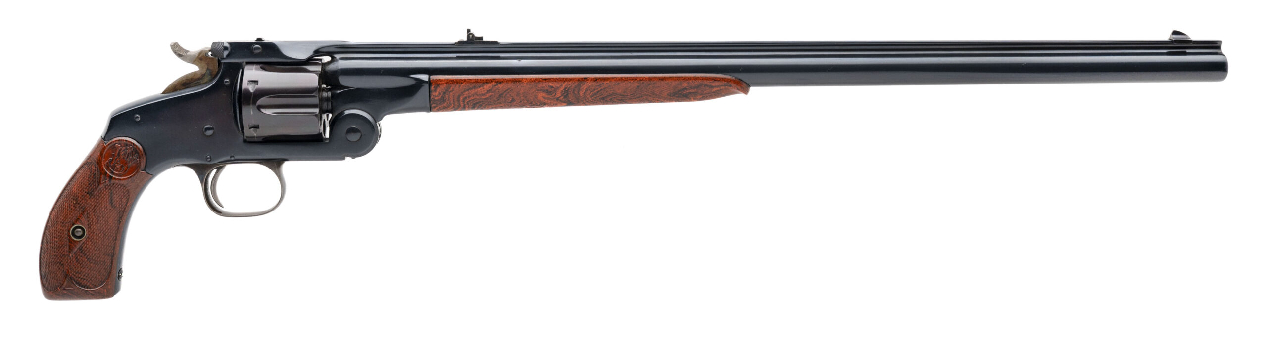 Serial 628. Made circa 1880s. 320 S&W rifle caliber with a 18” barrel. This gun has been refinished. There is a star by the serial number which indicates a factory refinish. This gun comes with the original stock with the original sight. The grips and forearm are excellent.