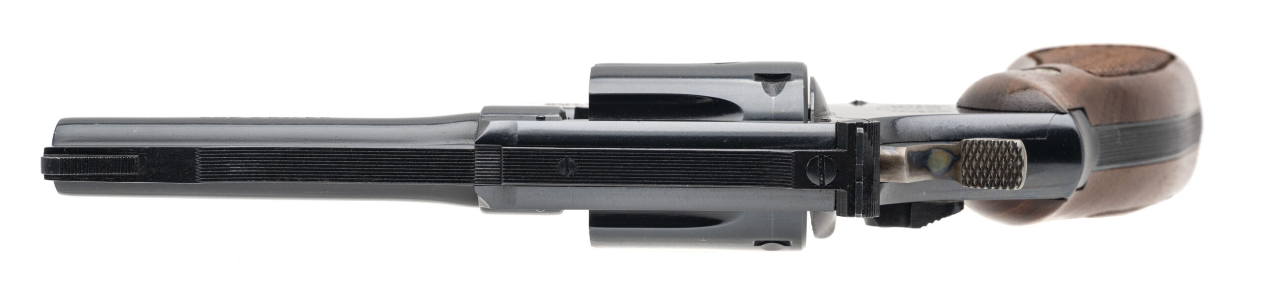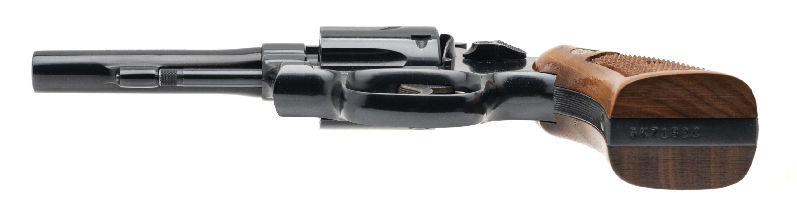 SN: 5K71822. Circa 1960s. Double-action revolver chambered in .22 Magnum with a 4" barrel. Bore condition is excellent, finish is in excellent condition with a very faint cylinder turn line, grips are Magna style in excellent condition. Comes with original box and the box is in very good condition with some wear over time.
