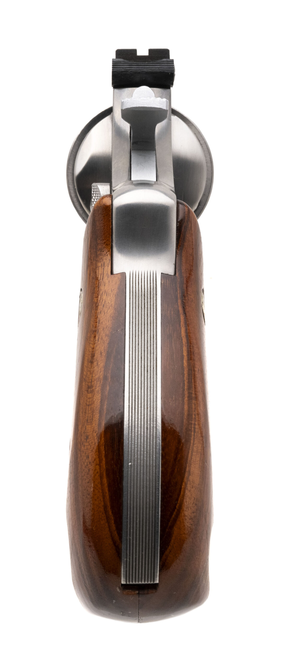 SN: BFA3298. Made circa 1990’s, 10mm with a 5” barrel. Bore is excellent. Double action stainless revolver with combat wood grips. overall condition is excellent. Comes with box.