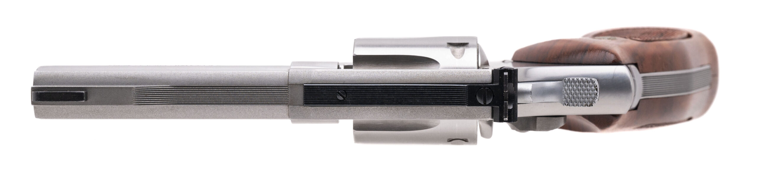 SN: BPN0550. Made circa early 1990s, .22LR with a 4" barrel. Bore is bright with strong rifling. Beautiful L-frame revolver. Stainless steel is in very good condition. Checkered wood grips are in excellent condition. Overall condition is very good. Comes with box.