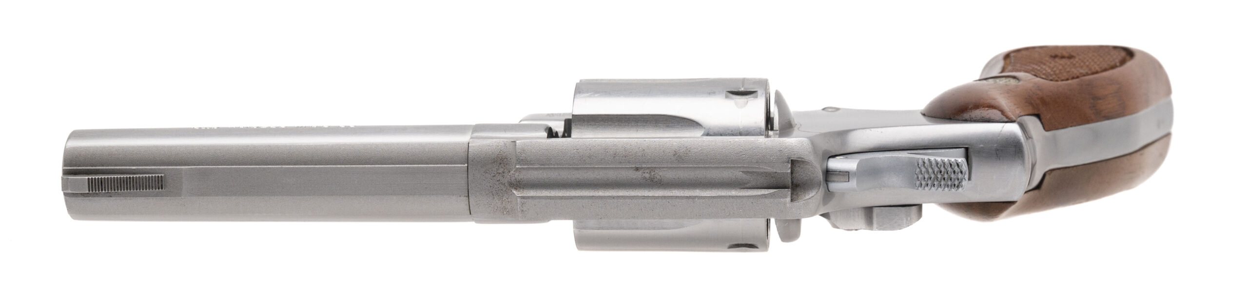 SN: AHV0489 made circa 1980's. Stainless Steel double action 38 special K frame revolver with a 4" barrel, trench sights, 6 shot cylinder and original checkered walnut grips. Overall in very good condition. Dallas Location