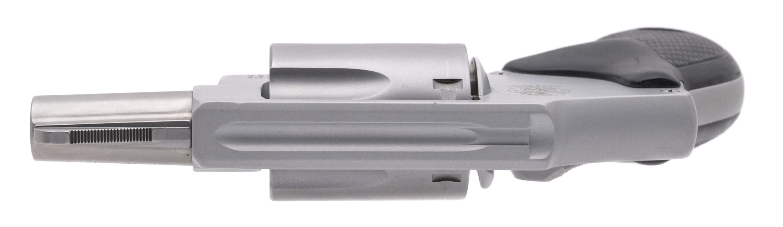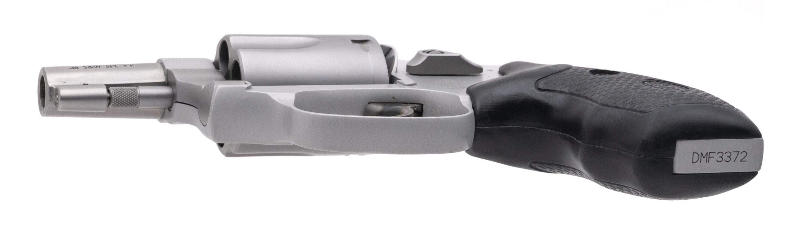 SN: DMF3372. Modern production, .38 S&W SPL. +P with a 1.875" barrel. Bore is excellent. Double-action alloy J-frame revolver with a 5rd cylinder, and textured rubber grips. Overall condition is excellent. Includes original box.