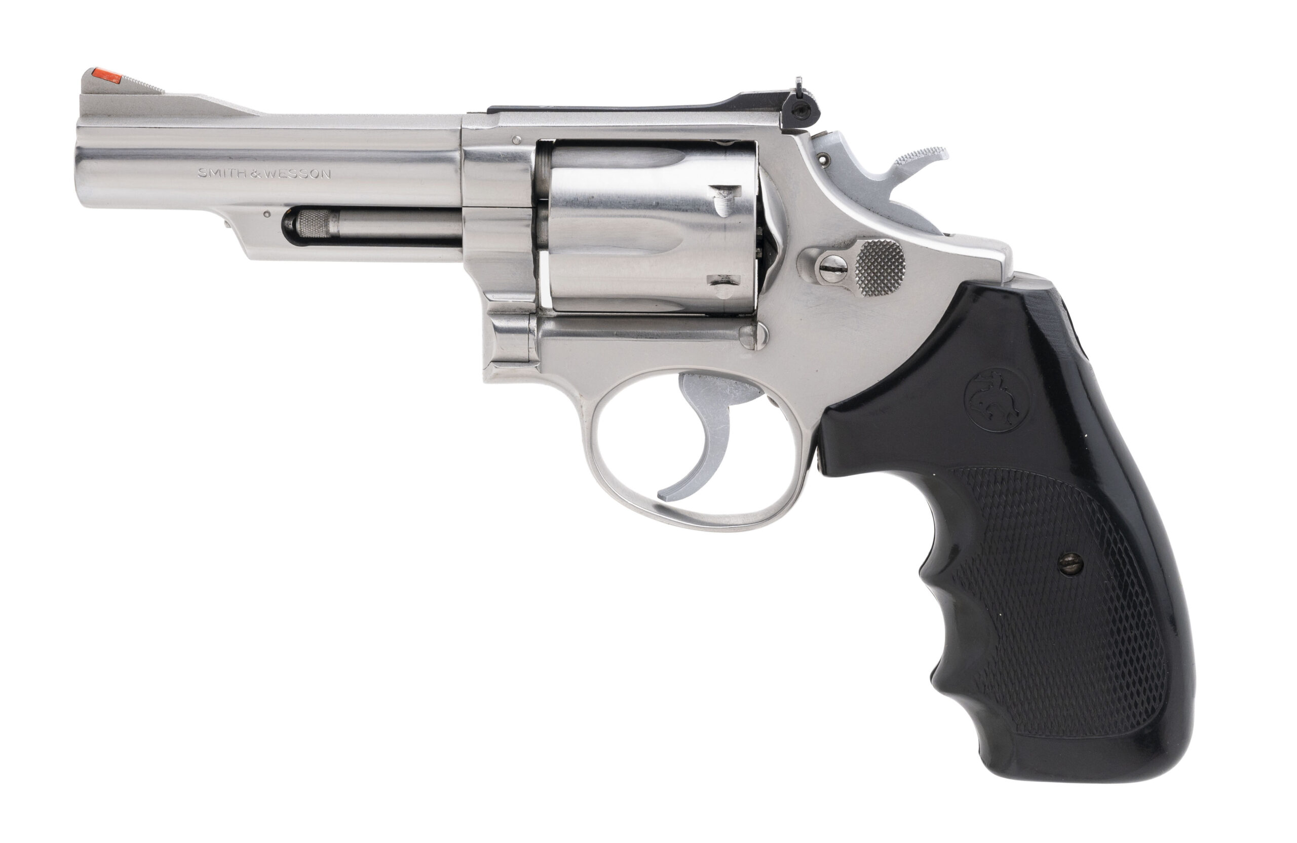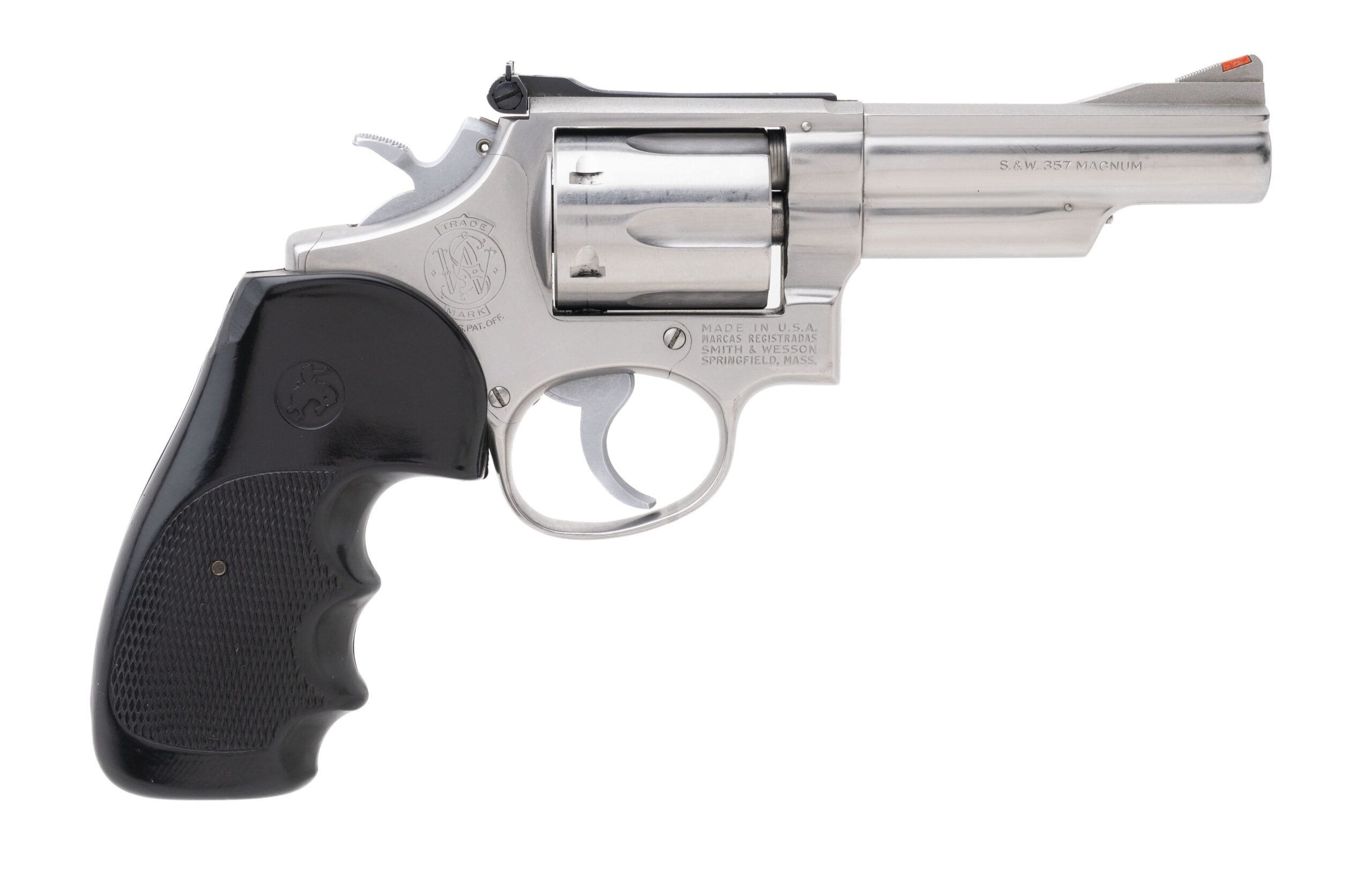 SN: 7K70526, Made in 1975, .357 Magnum with a 4" pinned barrel. Bore is excellent. Double action stainless revolver with recessed cylinder. Metal is in very good condition. Grips are in excellent condition. Overall excellent condition.