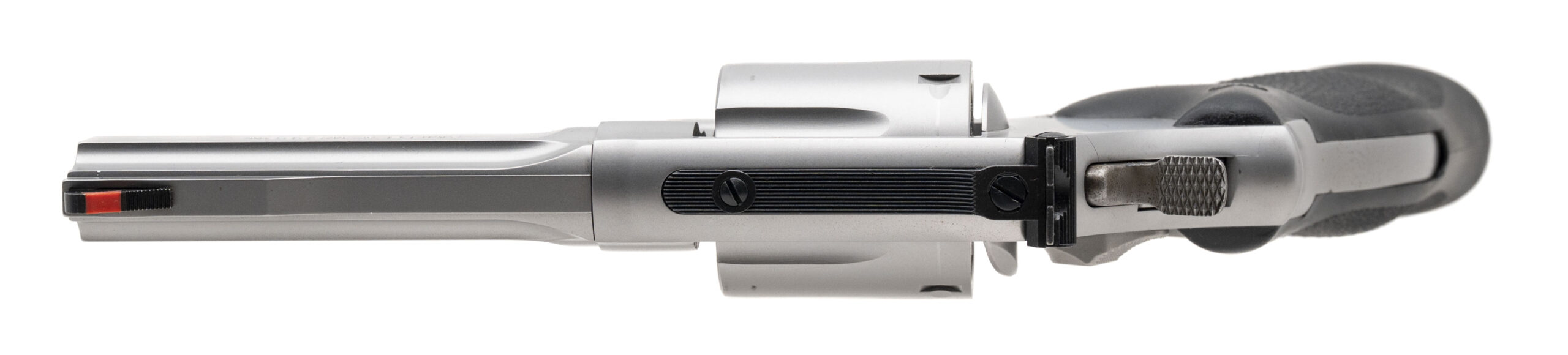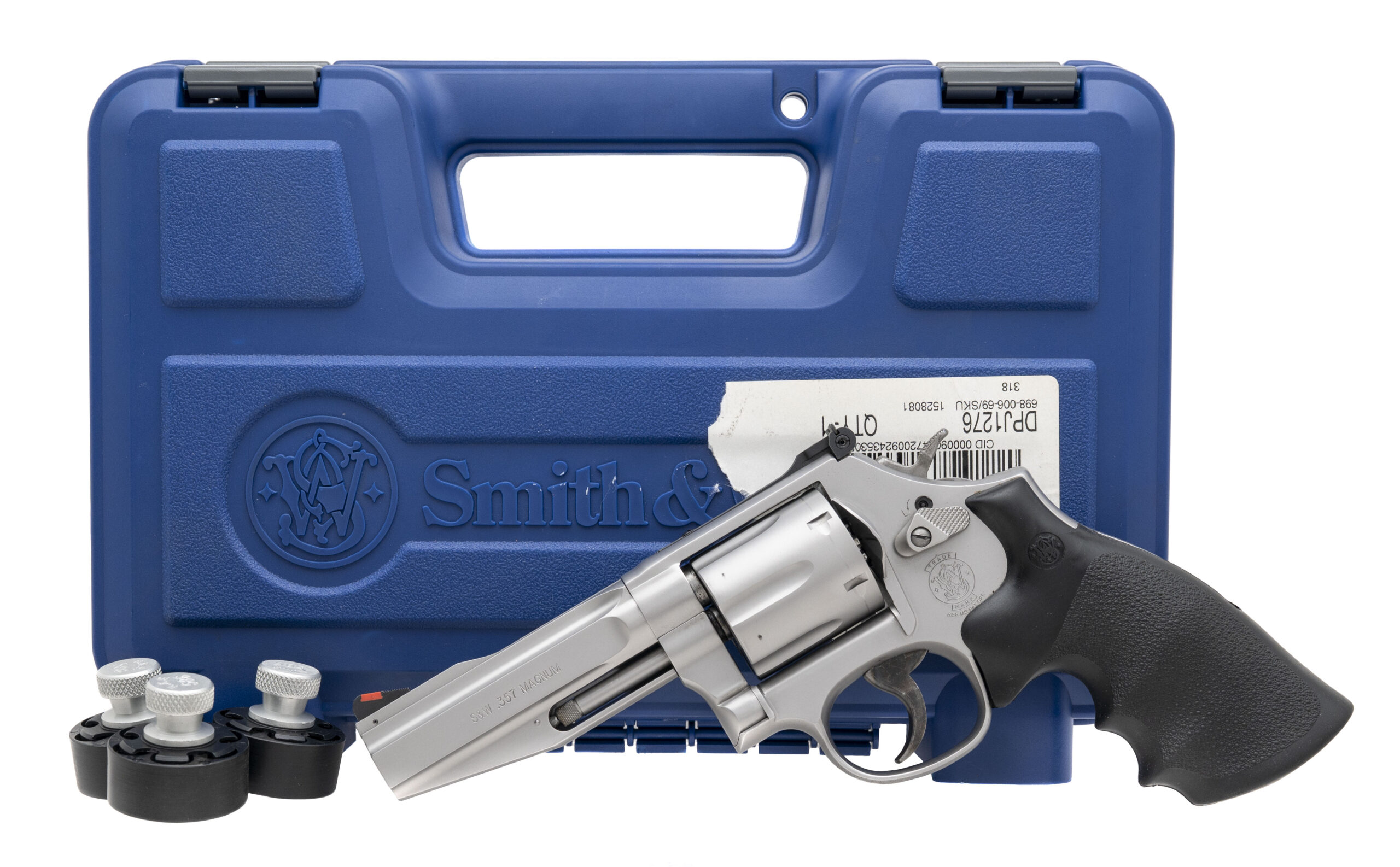 SN: DPJ1276. Modern production, .357 Magnum with a 4" barrel. Bore is bright with strong rifling. Pro series stainless steel double action revolver with Hogue rubber grips. Overall condition is very good. Comes with case and three speedloaders.