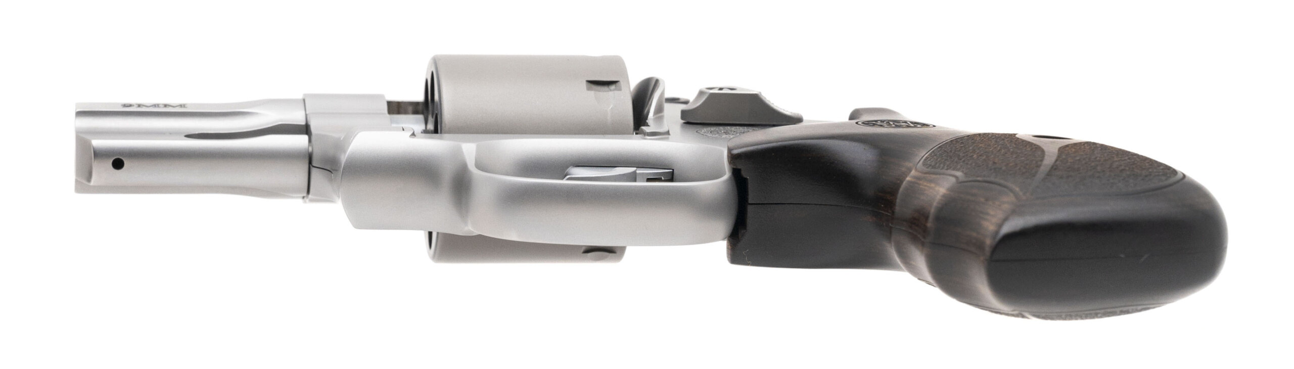 SN:DZC6783. Modern Production. 9mm with a 2.5" barrel. Bore is in excellent condition. Double action Performance Center revolver with 7 shot unfluted titanium cylinder. Finish and grips are in near excellent condition. Overall condition is excellent. Comes with box.