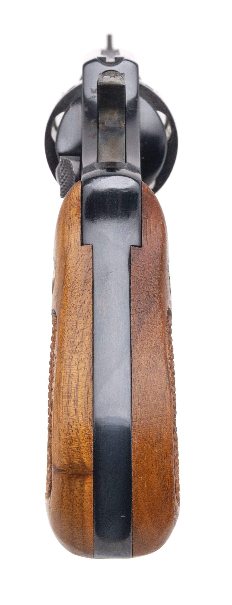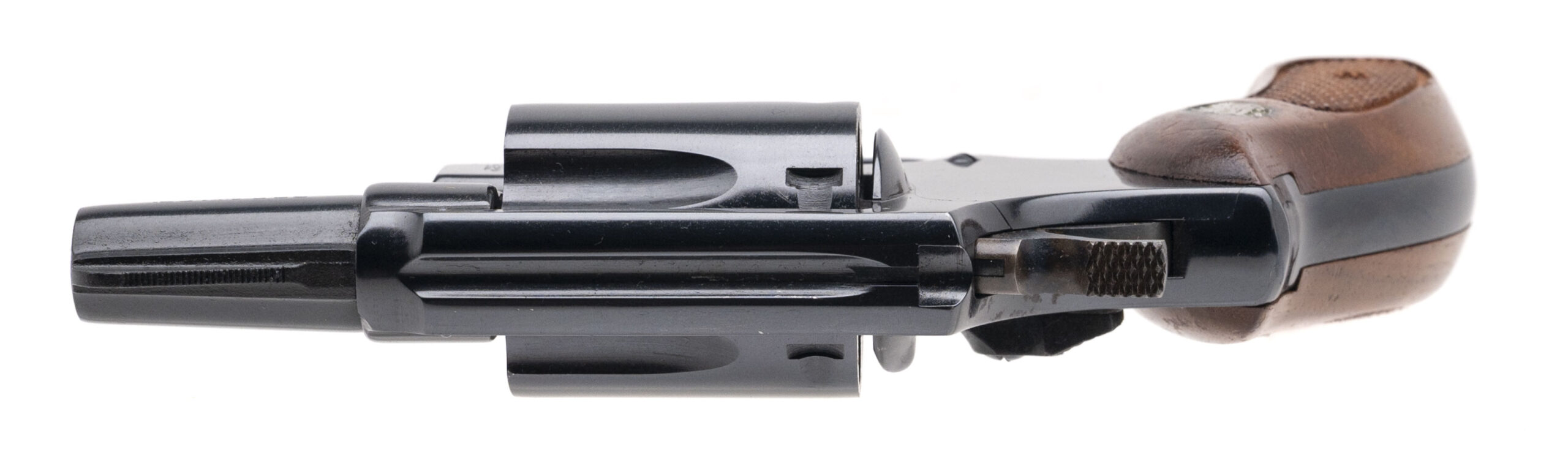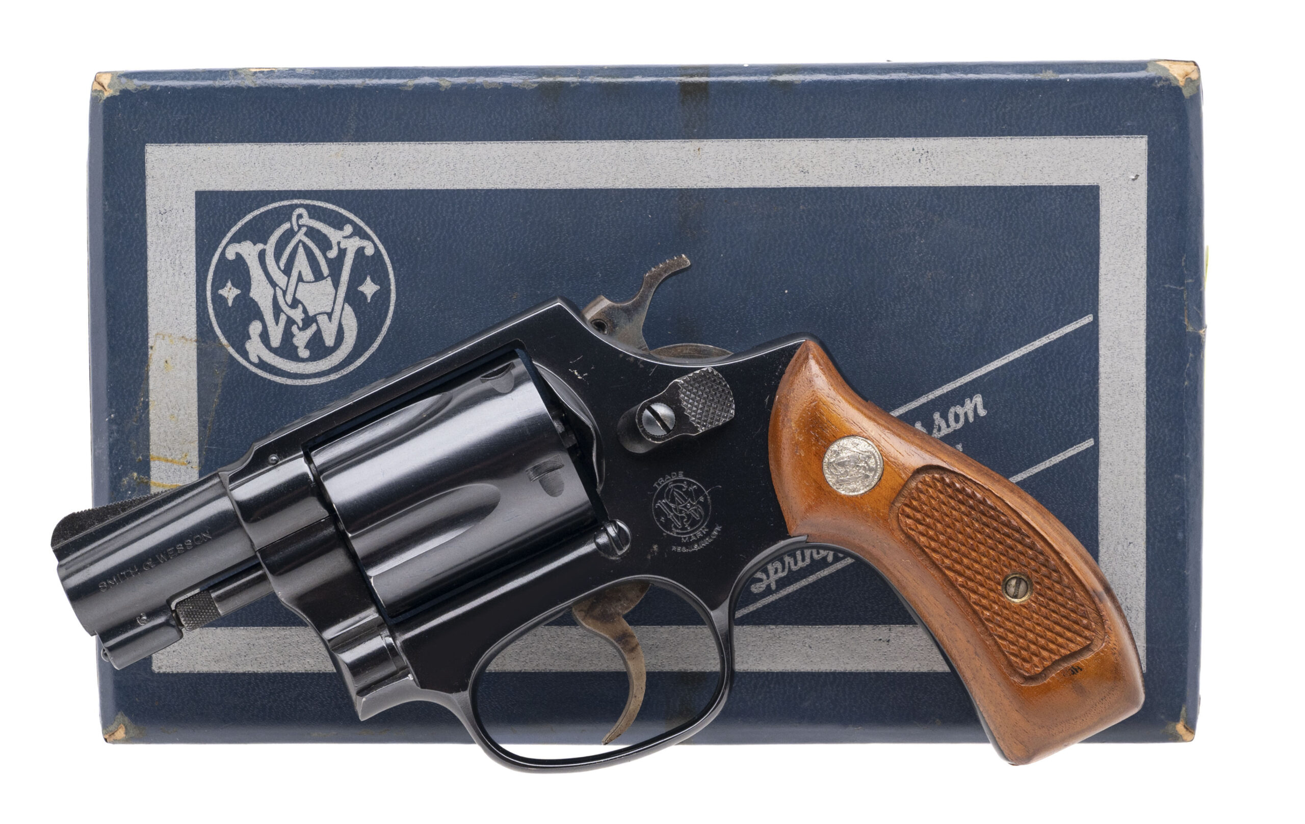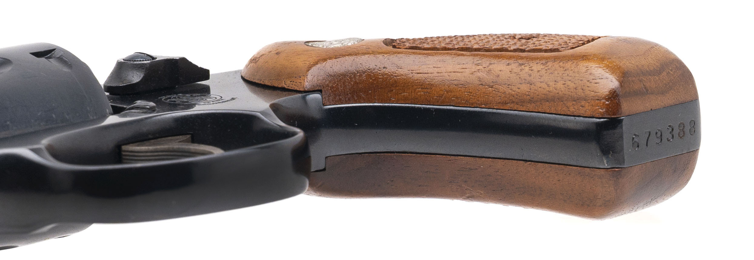 SN: 679388 made circa 1960's. J-frame double action 38 special with a 2" barrel and 5 shot fluted cylinder. Original blued finish and checkered walnut medallion grips. Overall in near excellent condition for the age. Comes with original box numbered to the gun.