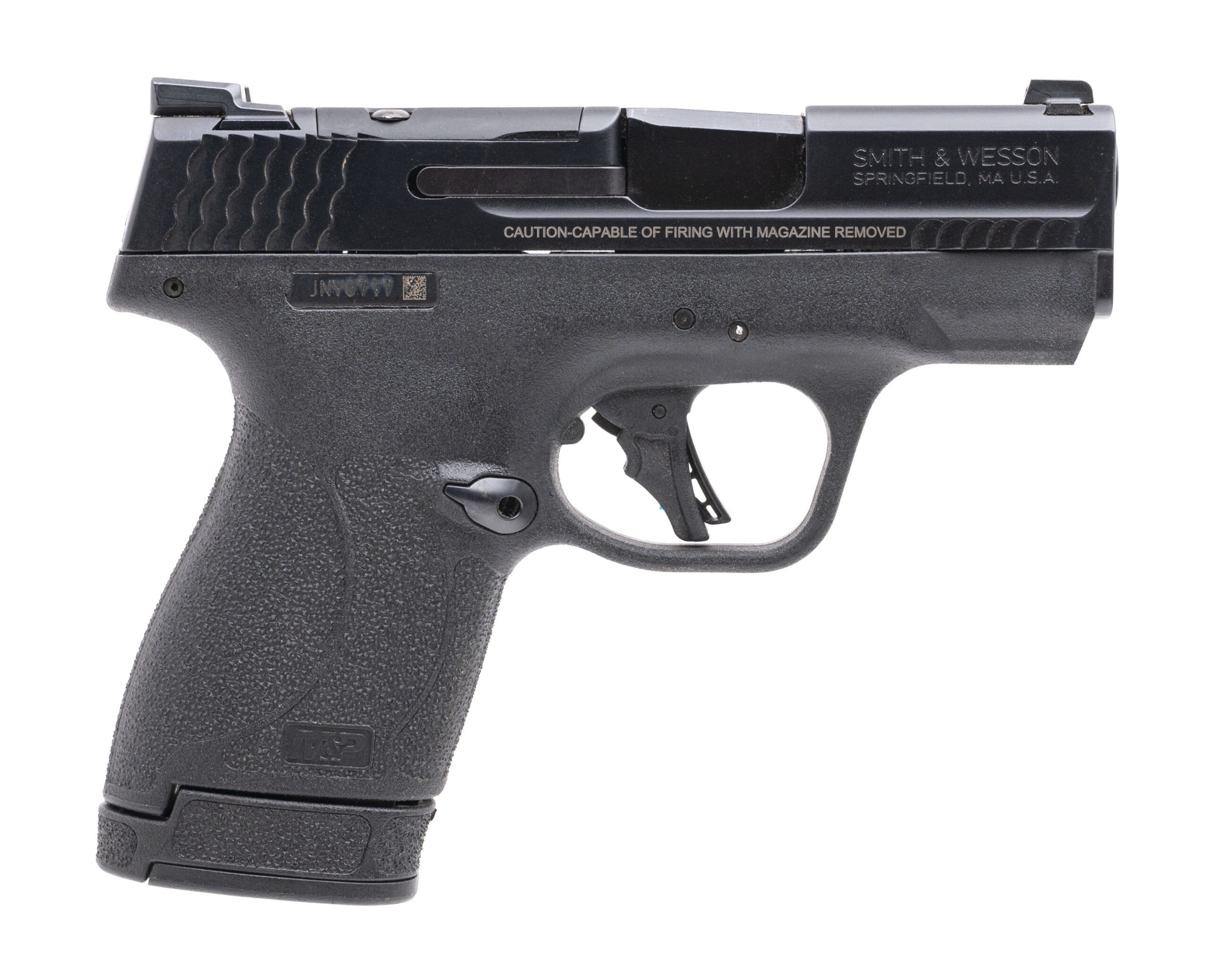 SN: JNY0717. Modern production, 9mm with a 3.125" barrel. Bore is very good. Sub-compact polymer frame striker-fired pistol with an optics ready slide, front & rear night sights, manual thumb-safety, and armornite finish. Overall condition is excellent. Includes an additional magazine, and original box.