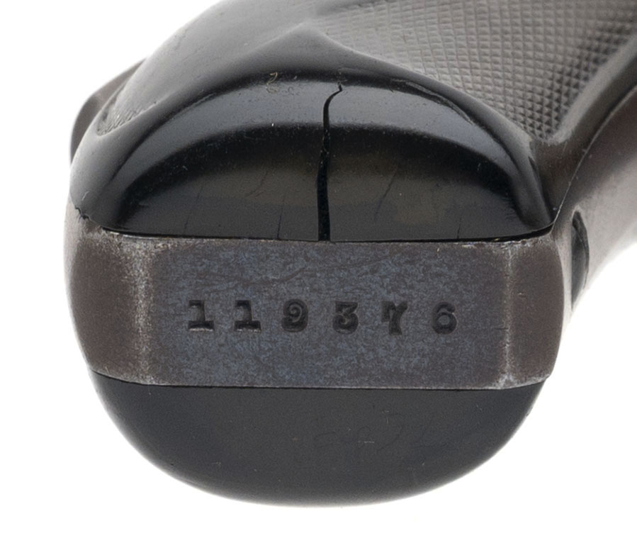 Serial number 119376. Made in 1899. 38 S&W Short caliber with a 6” barrel. This gun us in very fine condition with 80% of the original blue. The grips are very good showing some carry wear. The bore is excellent!