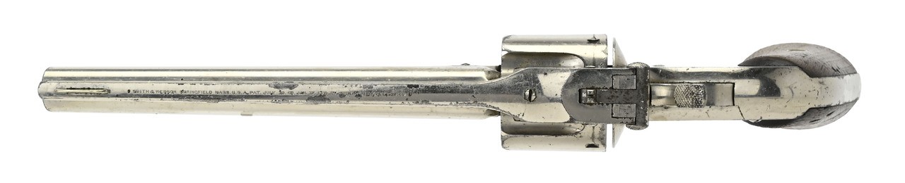 Smith & Wesson No.3 1st Model American. Made in 1871. .44 American caliber with a very rare 6 ½” barrel. This gun is in very fine condition with approximately 90% of the original nickel. Grips are good, and show carry use. This gun is all matching. Action works well. This gun comes with a factory letter that says this gun was shipped to MW Robinson in New York, NY on April 10, 1871 with a shipment of 100. Unfortunately, barrel lengths were not described in the letter.