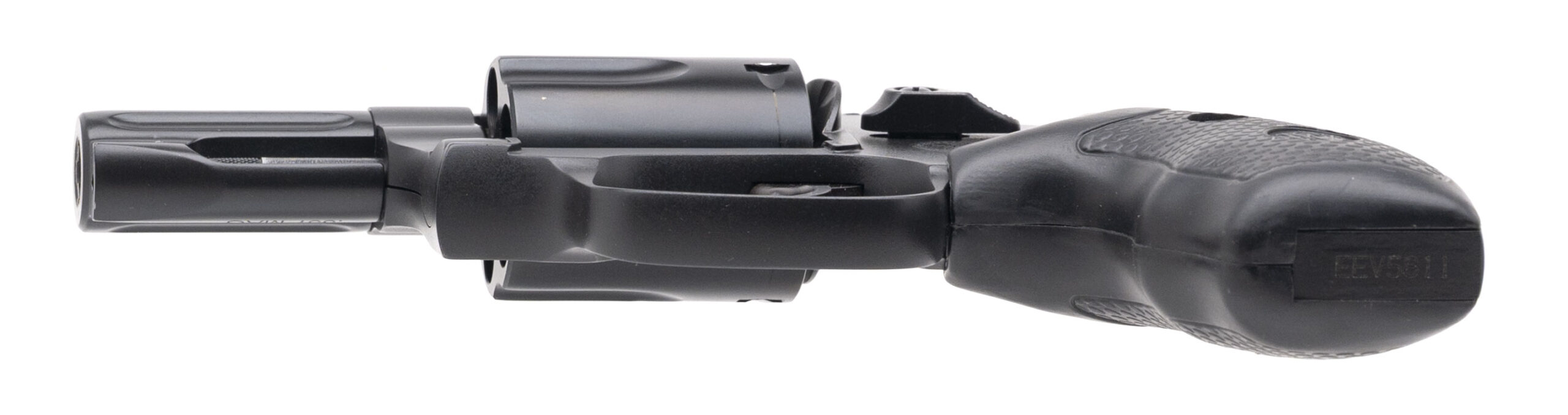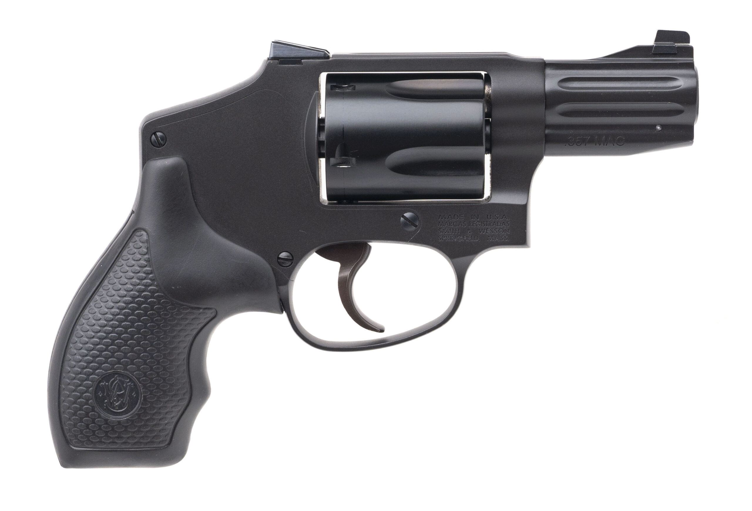 SN: EEV5811. Modern production, .357 MAG. with a 2.125" fluted barrel. Bore is excellent. performance center tuned double-action only J-frame revolver with front & rear night sights, 5rd cylinder, steel frame, black cerakote finish, and black rubber grips. Overall condition is excellent. Includes original box.
