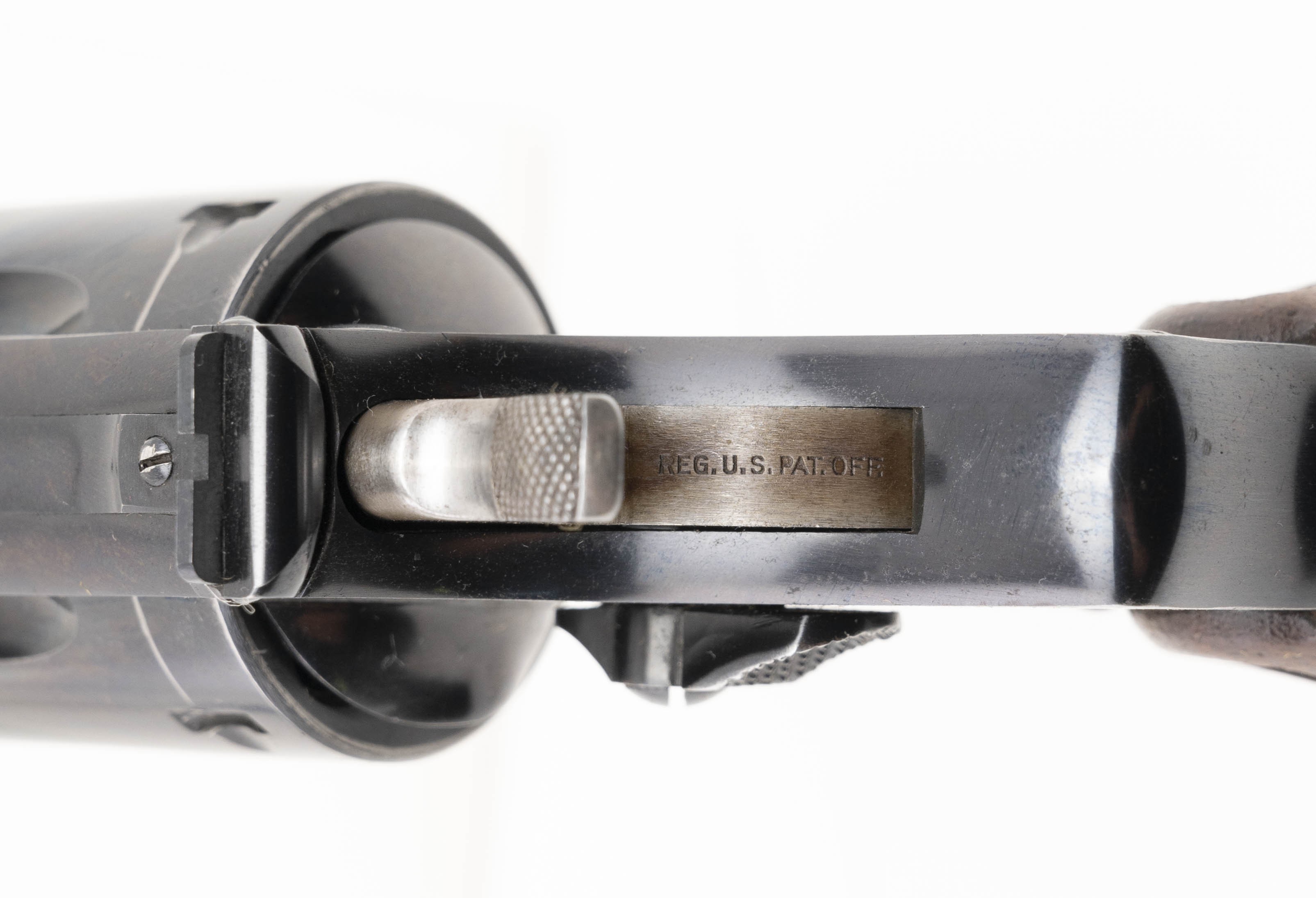 Pre-war 4" blue Kit Gun in excellent condition. Has about 97% original bright blue with just a bit of muzzle and edge wear. Comes in original numbered box. A rare and desirable S&W Kit Gun.