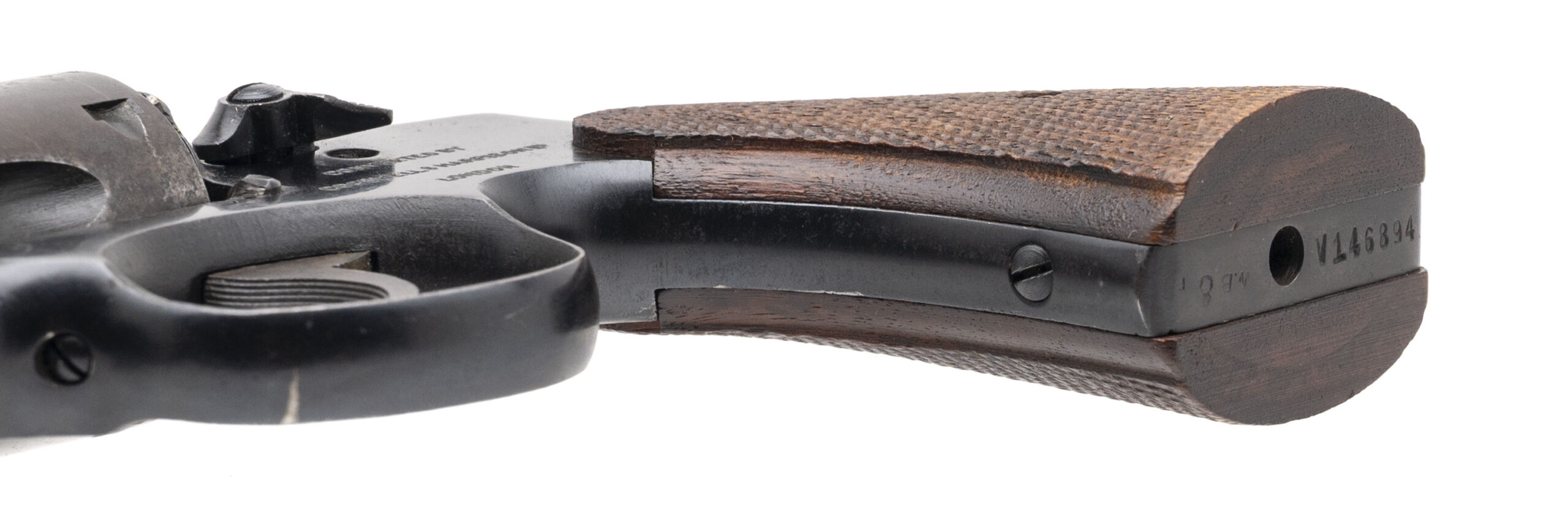 SN: V146894, made circa 1940s, 4” double action 38 S&W British service revolver that was converted to 38 special by Cogswell & Harrison as marked on the frame. Missing the lanyard loop but overall in good condition with moderate wear and replacement grips.