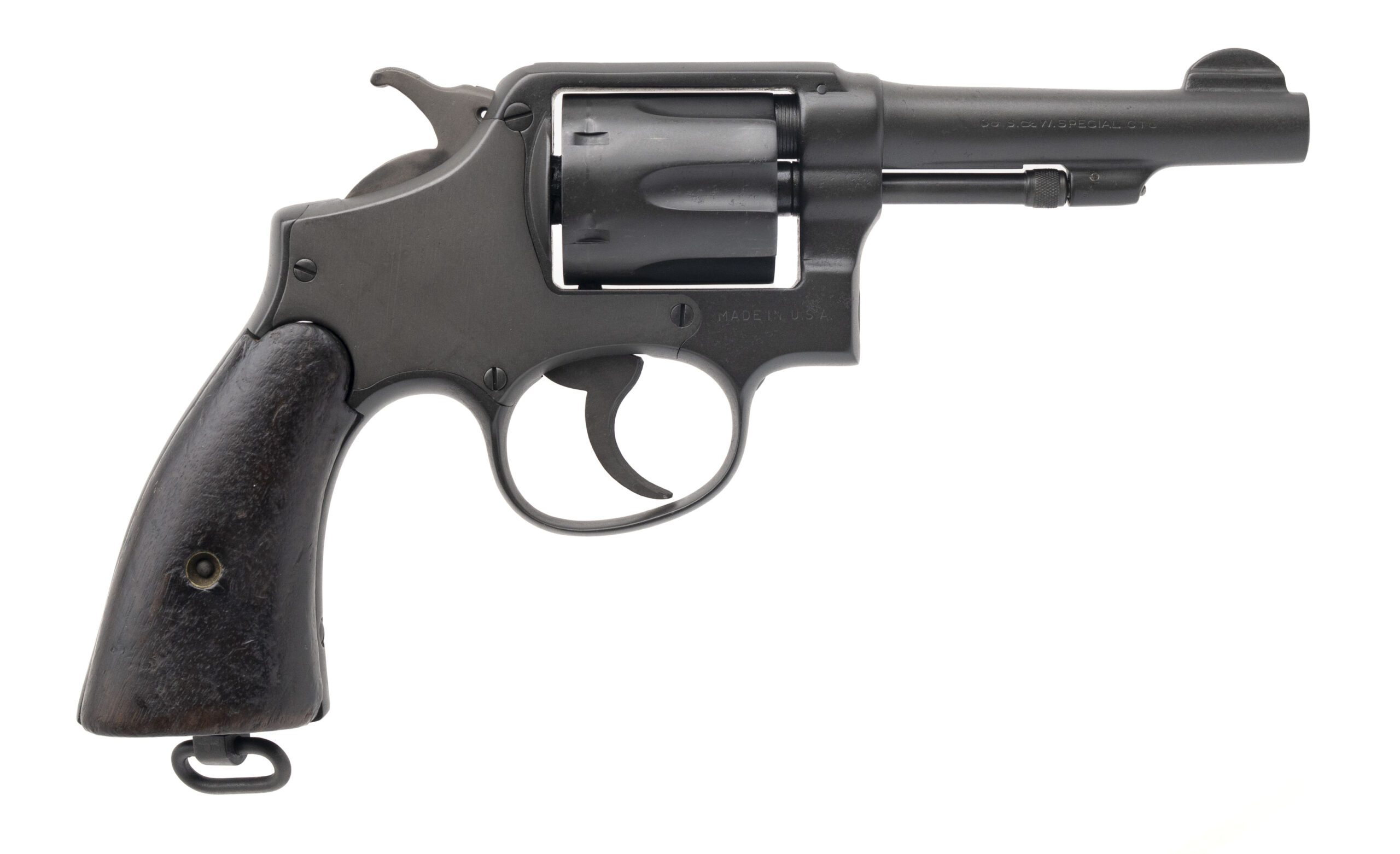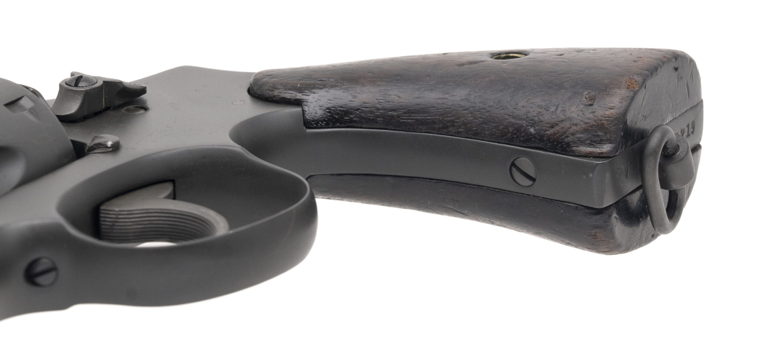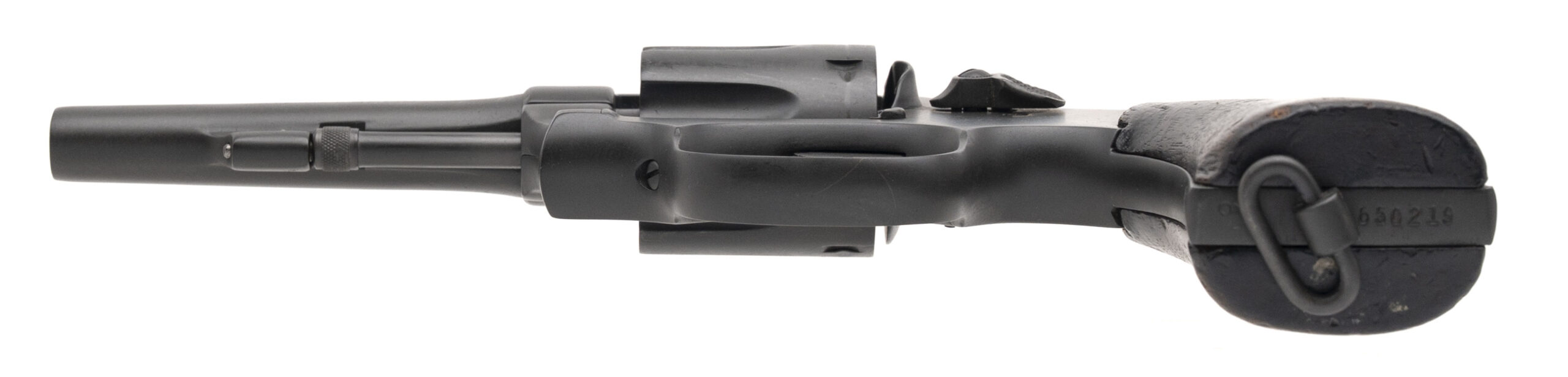 Serial number V650219. Made circa 1942-1944. 38 Special with a 4” barrel. This gun is in excellent condition as arsenal refurbished. The grips are very good with normal handling wear.