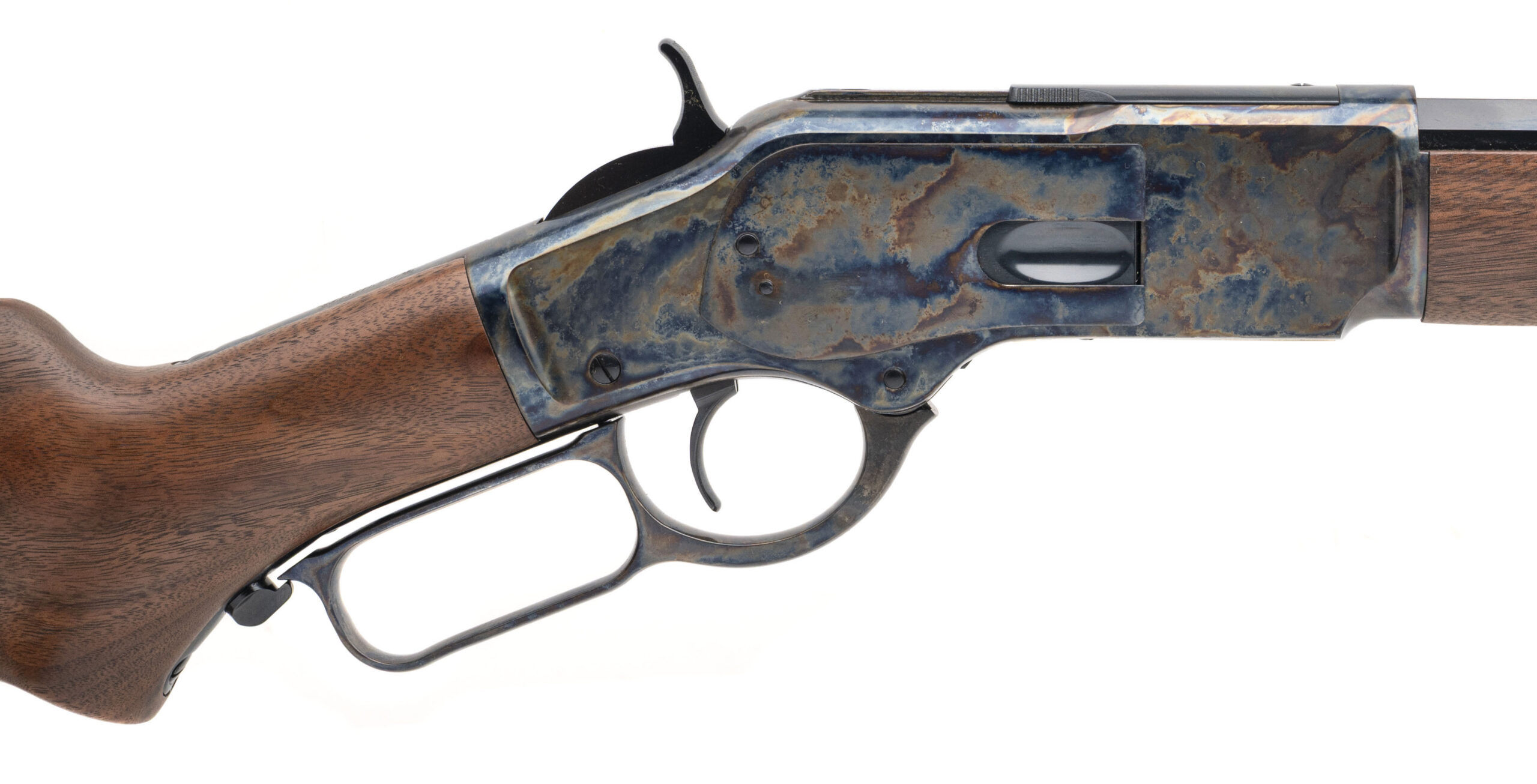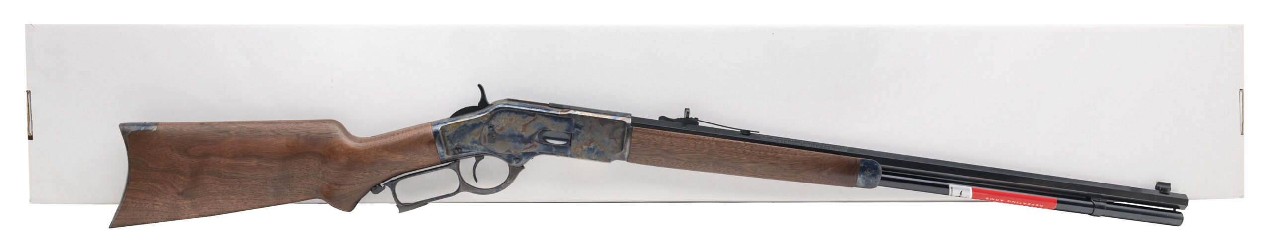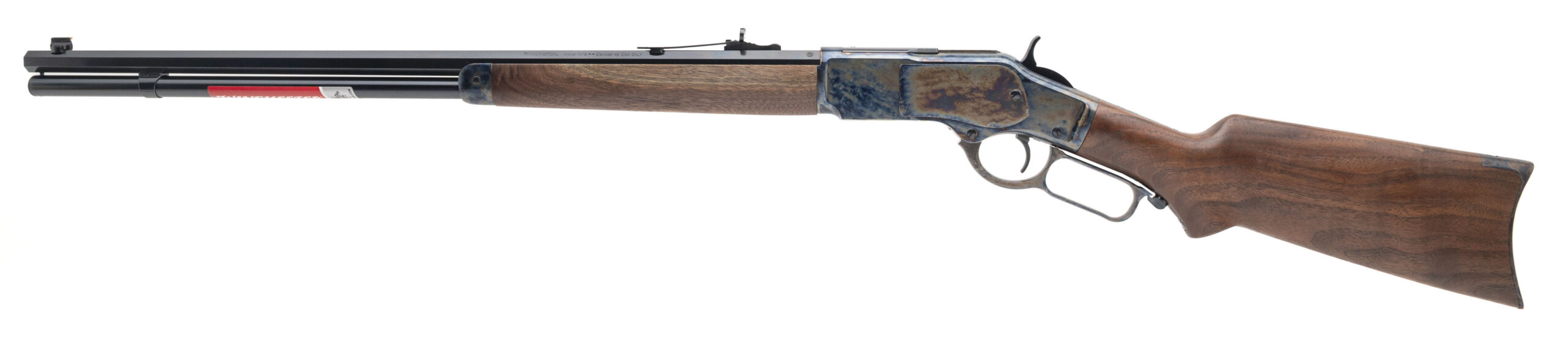 Lever-Action Rifle with a 24" Octagon Barrel. Marbles Gold Bead Front Sight, Adjustable Semi-Buckhorn Rear Sight, Blue Finished Barrel, Color Case Hardened Receiver, and Grade II/III Walnut Wood Forend & Stock w/Crescent Buttplate. NEW. UPC: 048702006135