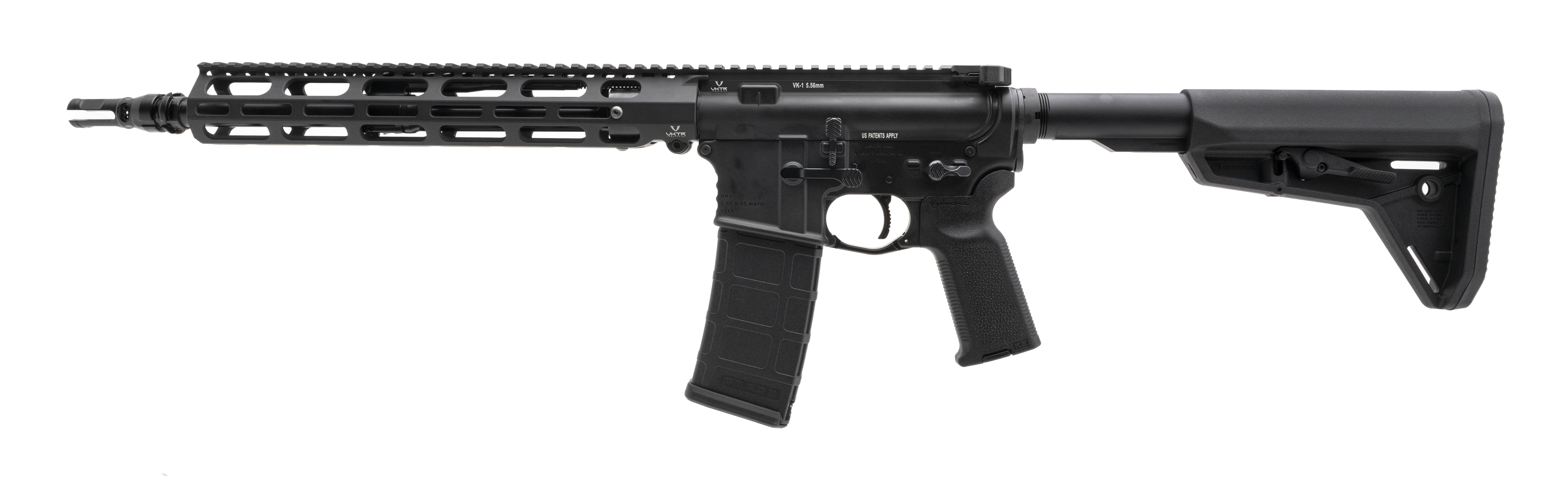 VKTR VK-1 5.56 NATO with an 16" Hammer Forged Pinned & Welded Barrel with an SOLGW Muzzle Device. Black Armor Finish, Piston Driven Operating System. Heavy Duty Buffer Retainer and Patented Billet Ambi Controls also a Precision machined one-piece patented bolt carrier with correct timing, revised cam path, finished in thin dense chrome. Patented enhanced cam path for consistent lock up, shot after shot. Match performance. NEW. UPC: 810155166045(STOCK PHOTO)