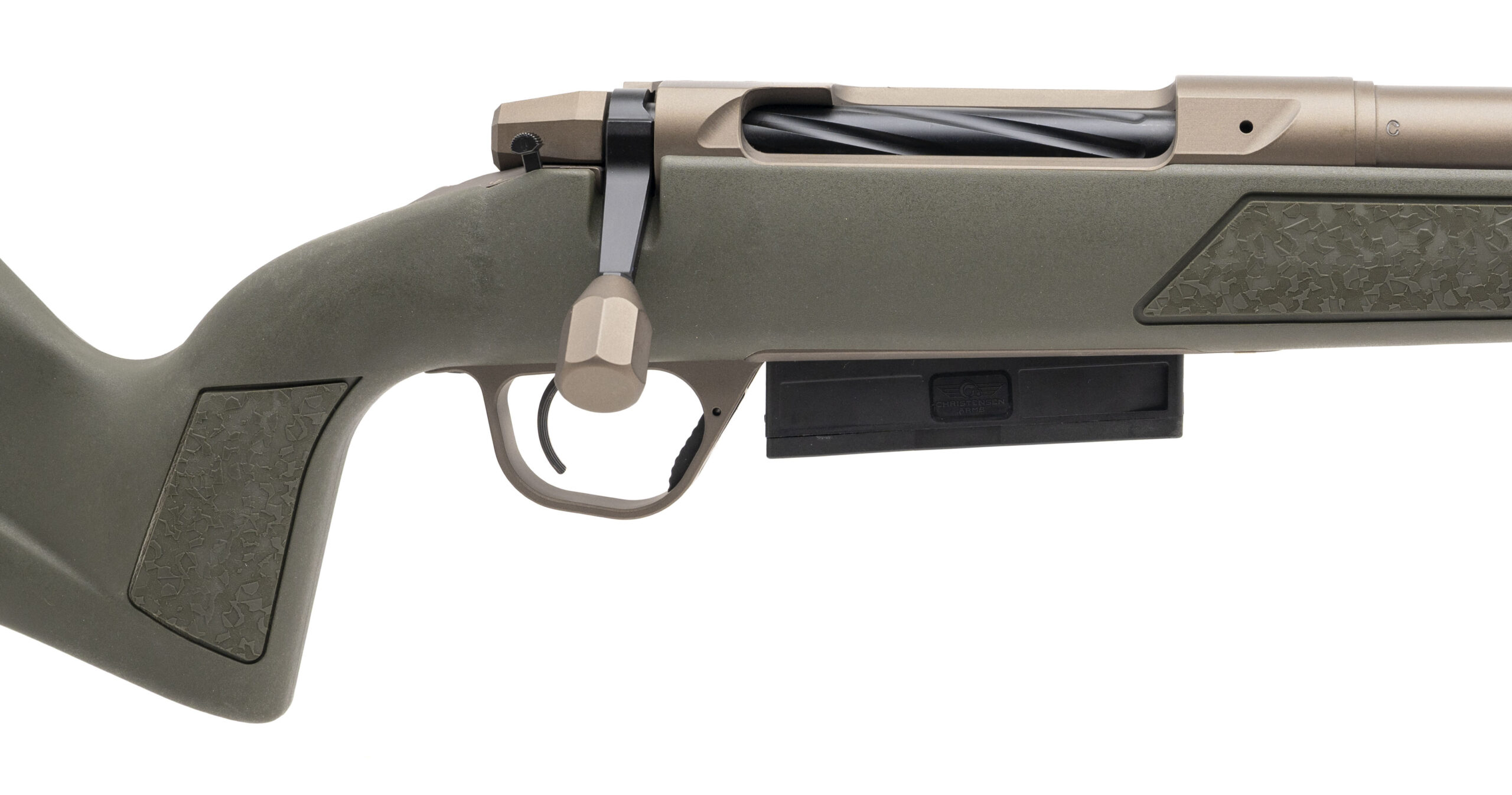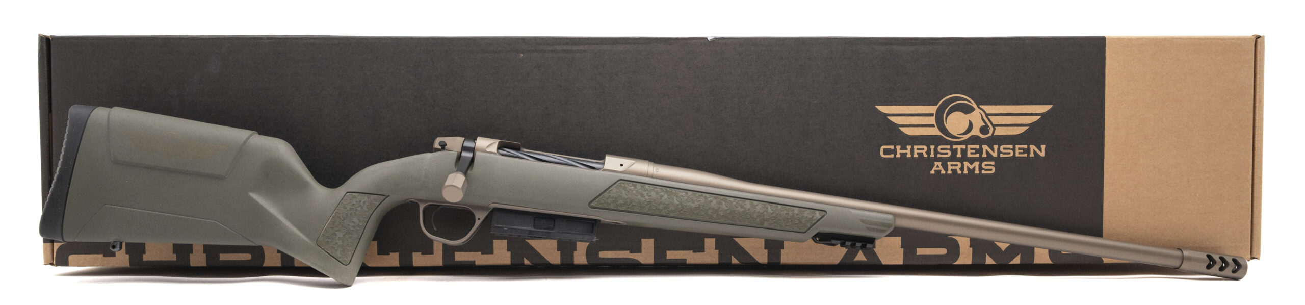 Bolt-Action Rifle with a 22" Threaded Barrel w/Premium RFR Muzzle Brake. TriggerTech Adjustable Trigger, Burnt Bronze Cerakote Finish, and Green Synthetic Stock w/Integrated Picatinny Accessory Rail. NEW. UPC: 840290523786
