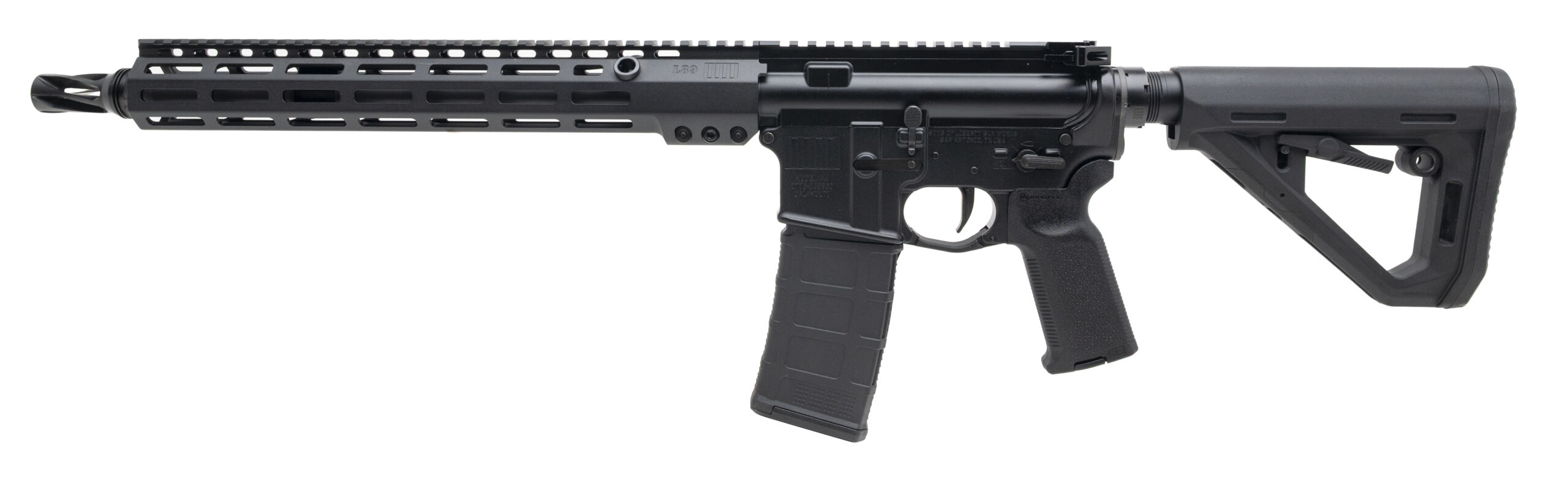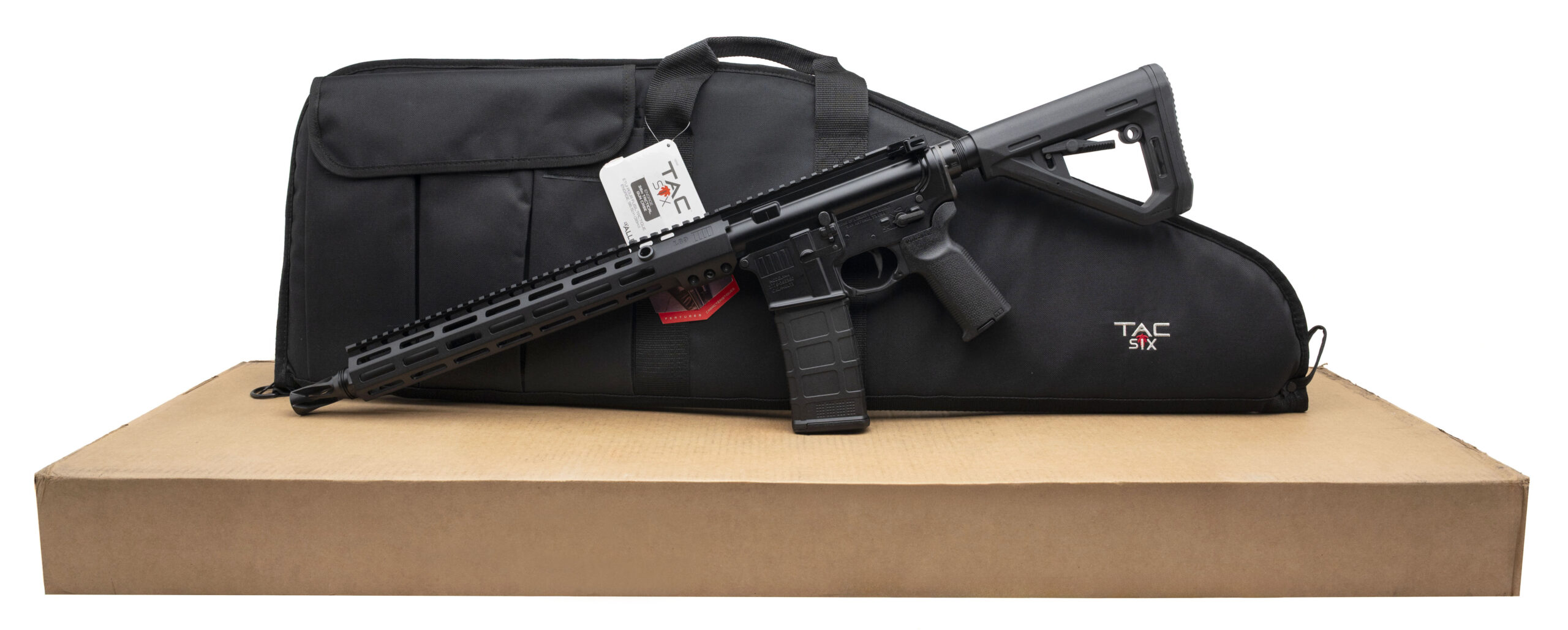 Semi-Automatic Tactical Rifle with a 14.5" Barrel w/Pinned & Welded Huxwrx Flash Hider. Anodized Finish, 13.75" M-LOK Handguard, Flat-Faced Trigger, and an Ambidextrous Selector Controls. Includes 1-30rd Magazine and Tactical Carry Bag. NEW. UPC: 657628672395(STOCK PHOTO)