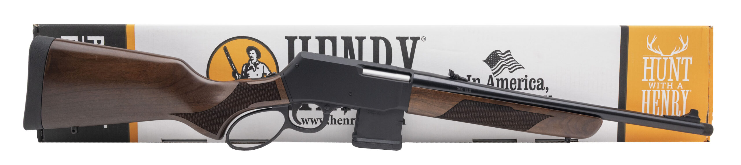 Lever-Action Rifle with a 16.5" Threaded Barrel. Bladed Front Sight, Adjustable Rear Sight, Black Anodized Finish, and Checkered Walnut Forend & Stock. Accepts AR Pattern Magazines. Includes 1-10rd Magazine. NEW. UPC: