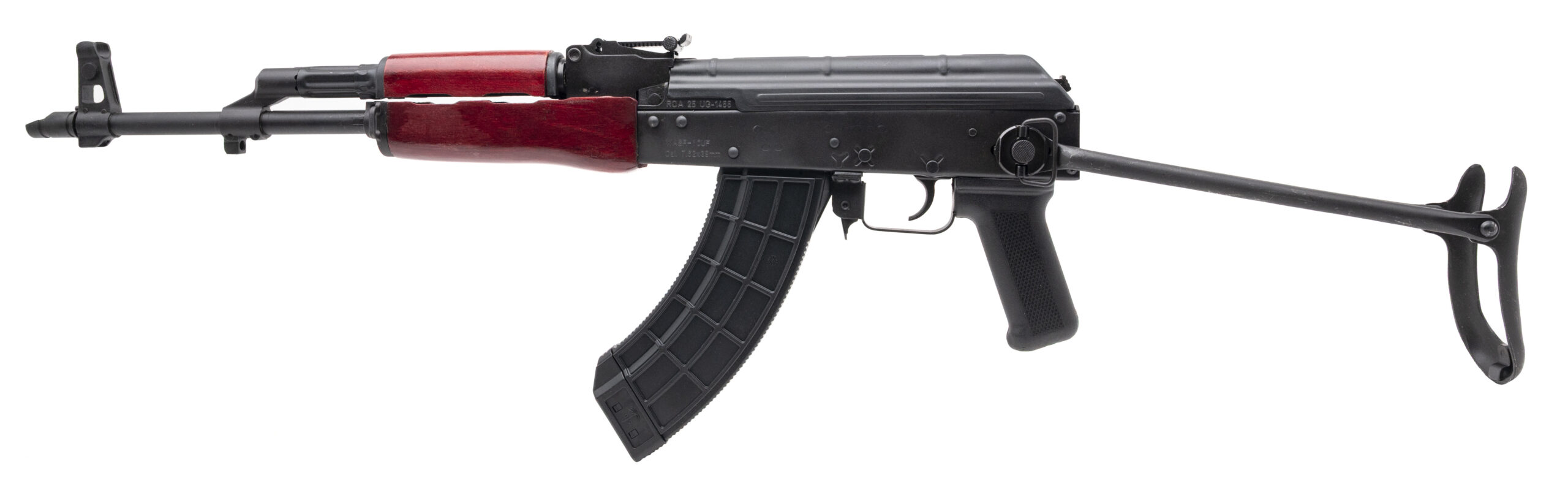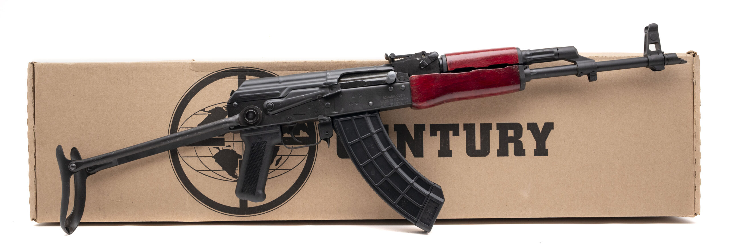 Romanian Made AKM Pattern Semi-Automatic Rifle with an 16.25" Barrel. Matte Finish, Russian Red Handguard, and Under-Folding Stock. Includes 1-30rd Magazine. NEW. UPC: 787450951815