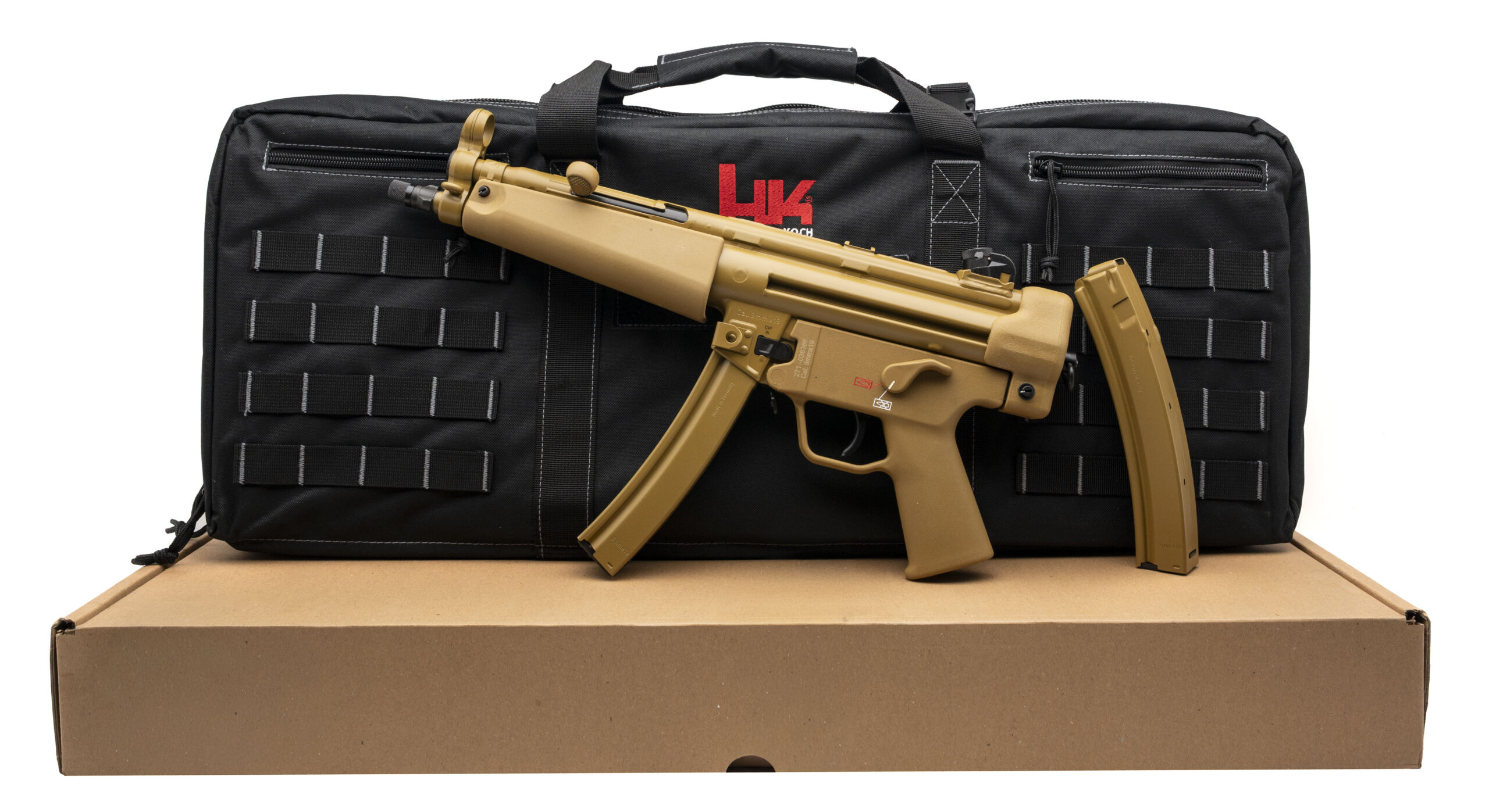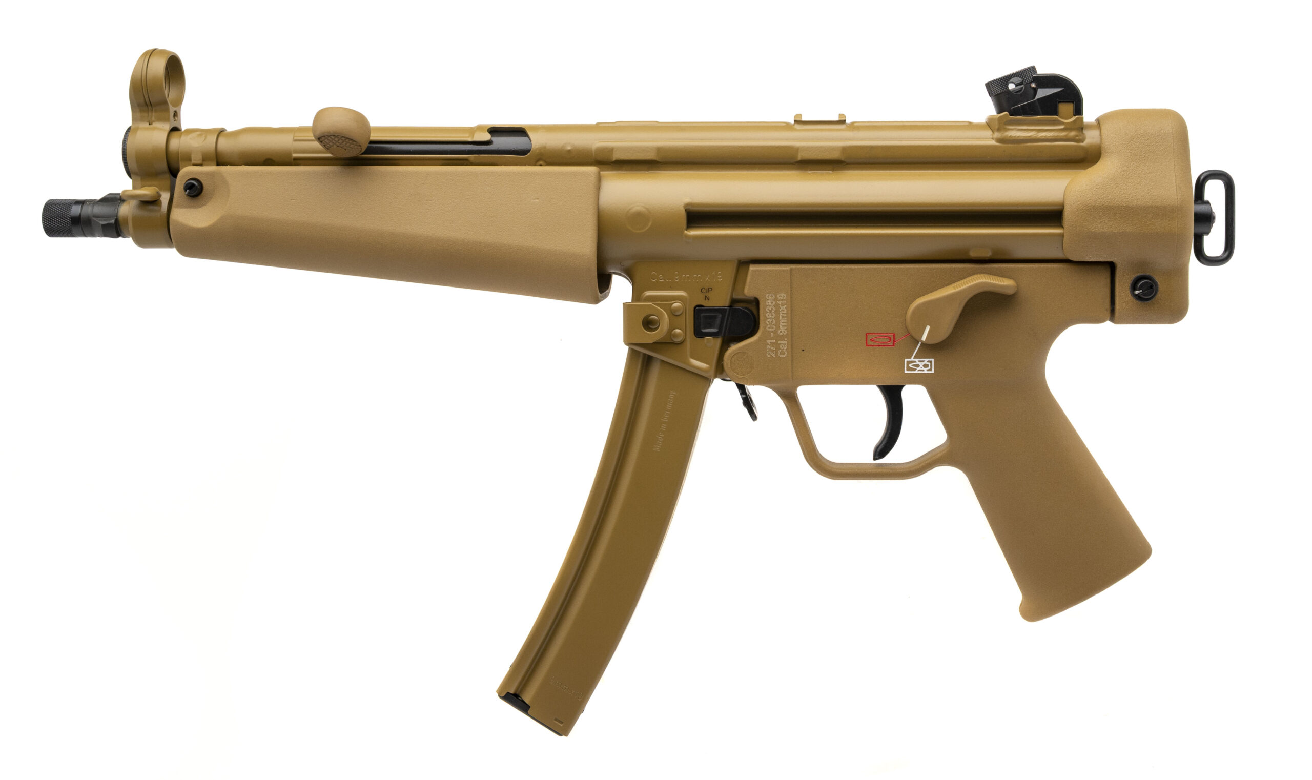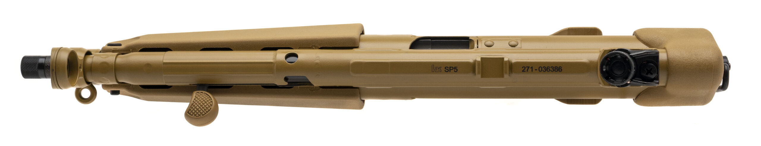 German Made Semi-Automatic Tactical Pistol with a 8.86" Threaded Barrel w/Tri-Lug Adapter. PDW, FDE Cerakote Finish, Polymer Grip Module, Roller-Delayed Blowback Operating System, and Paddle Mag Release. Includes an HK Range Bag, Single Point Sling, and 2-30rd Magazines. NEW. UPC: 642230269958