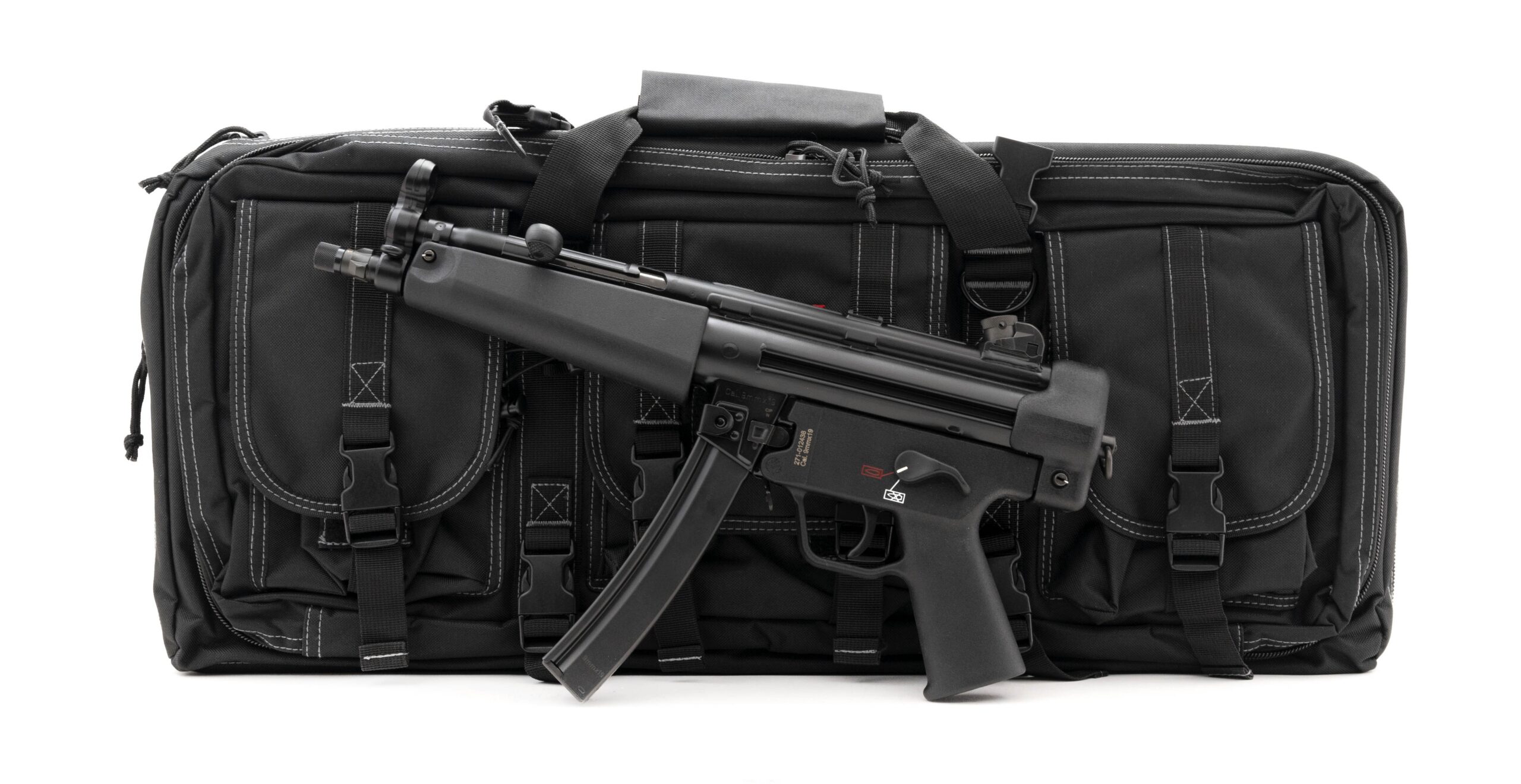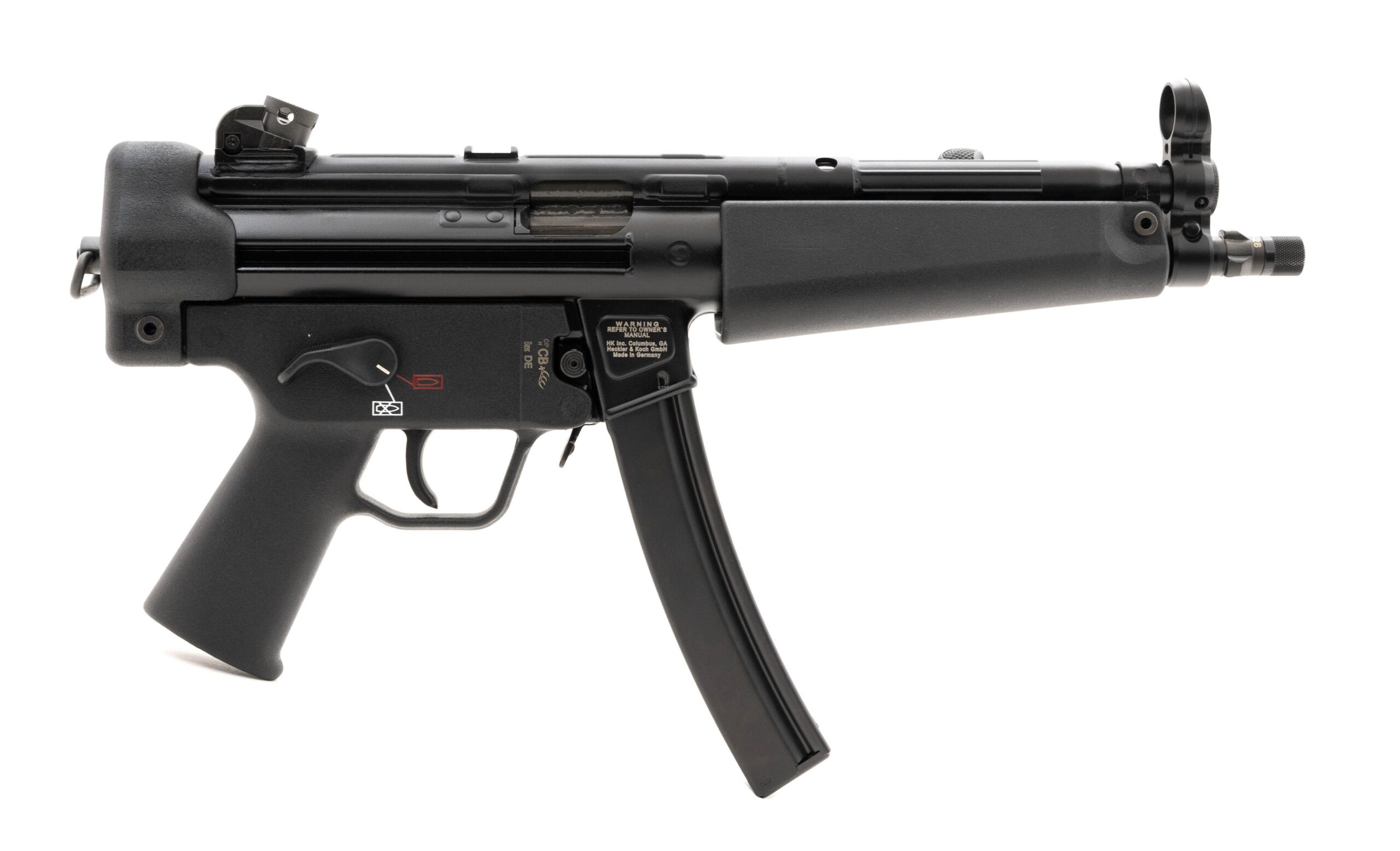 German Made Semi-Automatic Tactical Pistol with an 8.5" Threaded Barrel w/ Tri-Lug Adapter. Roller-Delayed Blowback Operating System, Black Finish, Polymer Lower Receiver, and Paddle Mag Release. Comes with HK Range Bag, 2-30rd Magazines and Bungee Sling. NEW. UPC: 642230259829