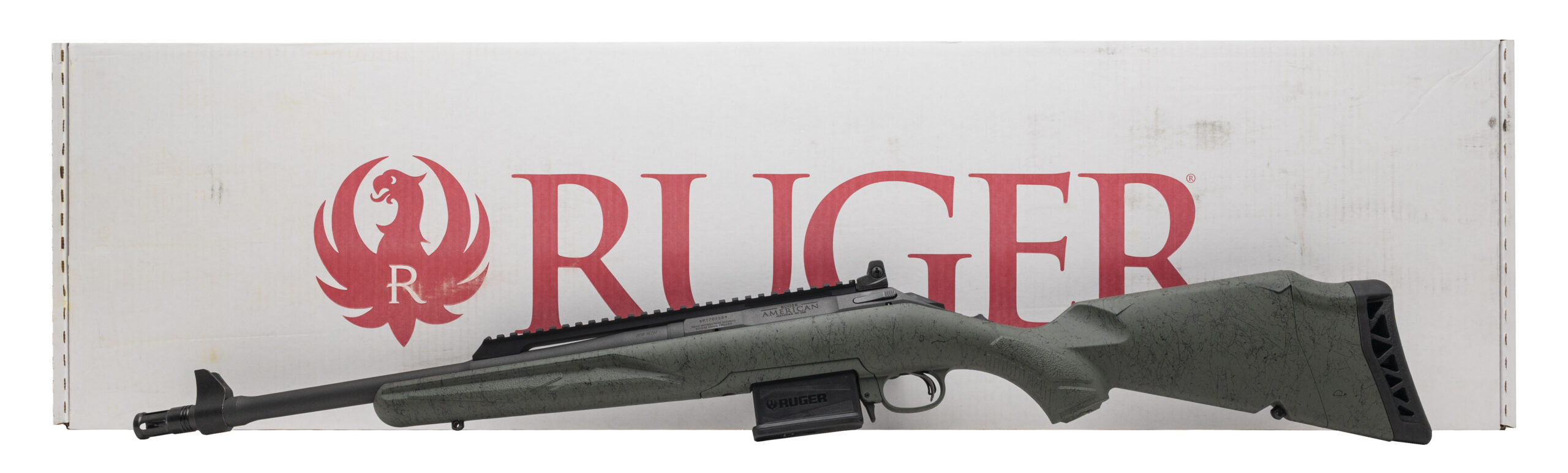 Bolt-Action Scout Style Rifle with a 16.1" Threaded Barrel w/Flash Hider. Scout Length Picatinny Optic Rail, Post Front Sight, Adjustable Aperture Rear Sight, Ruger Marksman Adjustable Trigger, Cobalt Cerakote Finish, and Leaf Green Splatter Synthetic Stock. Takes AICS Pattern Magazines. Includes 1-10rd Magazine. NEW. UPC: 736676469673(STOCK PHOTO)
