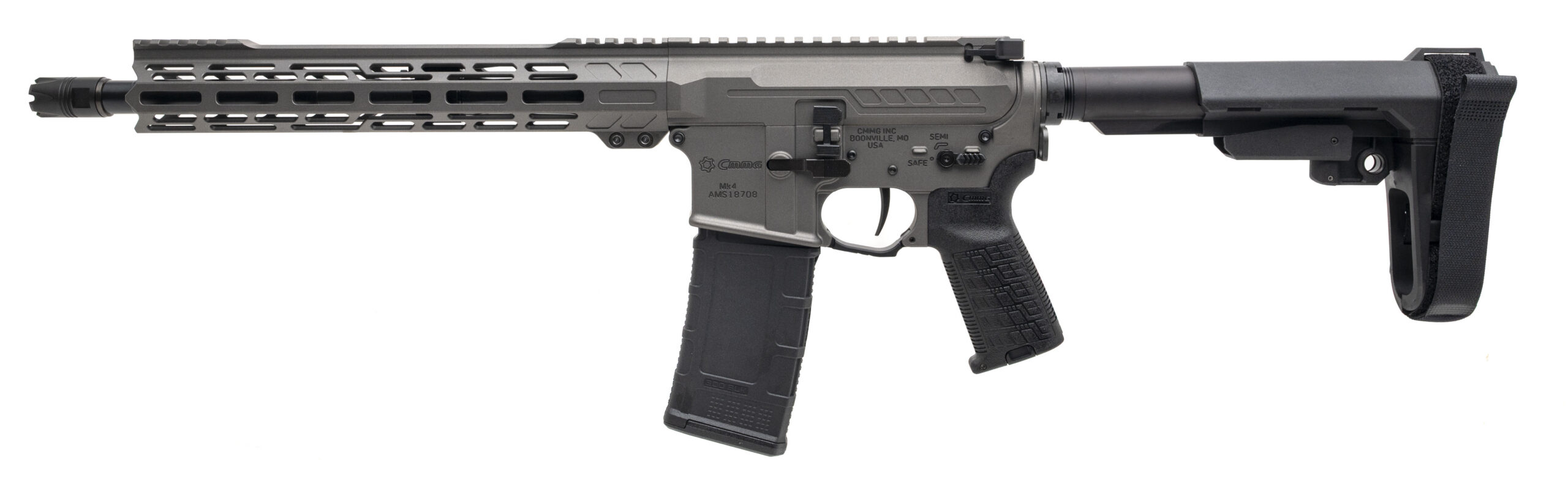 Semi-Automatic Tactical Pistol with a 12.5" Barrel w/Linear Compensator. Tungsten Gray Cerakote Finish, Polymer Grip, M-LOK Rail, Single-Stage Trigger, Ambidextrous Mag Release & Selector Controls w/45 Degree Throw, and an SB Tactical SBA3 Brace. Includes 1-30rd Magazine and Carry Bag. NEW. UPC: 810148623661(STOCK PHOTO)