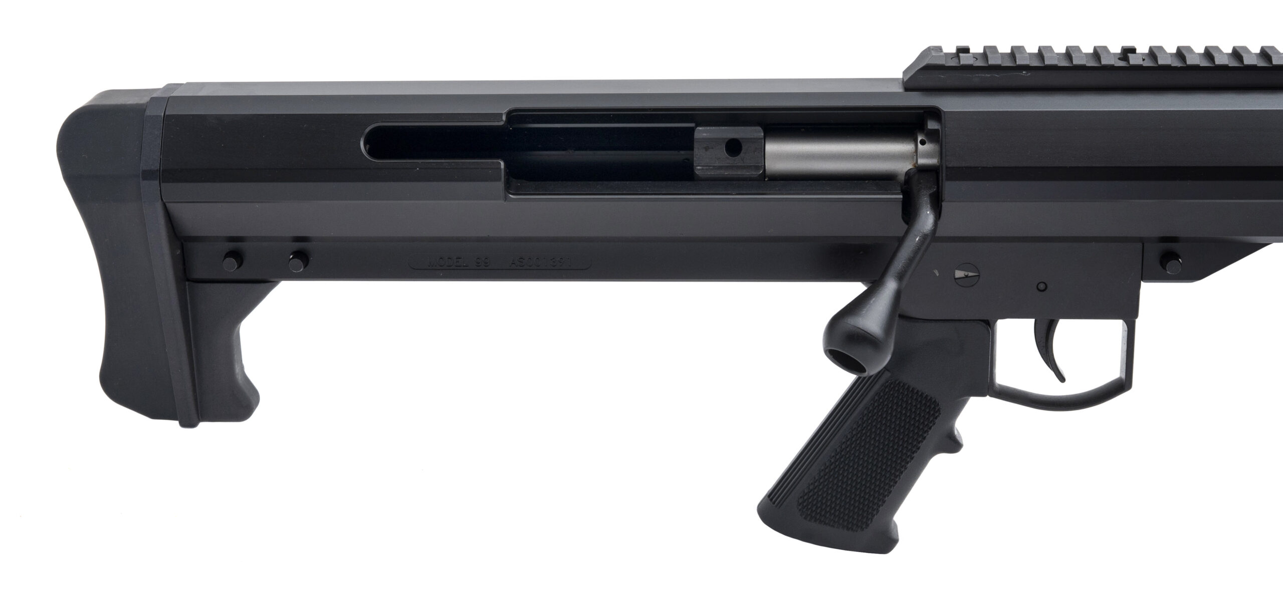 Single Shot Bolt-Action Rifle with a 32" Heavy Barrel w/3-Chamber Muzzle Brake. Monolithic Receiver, Picatinny Optic Rail, Collapsible Bipod, Rear Hand Grip, and Matte Black Finish. NEW. UPC: 816715011398