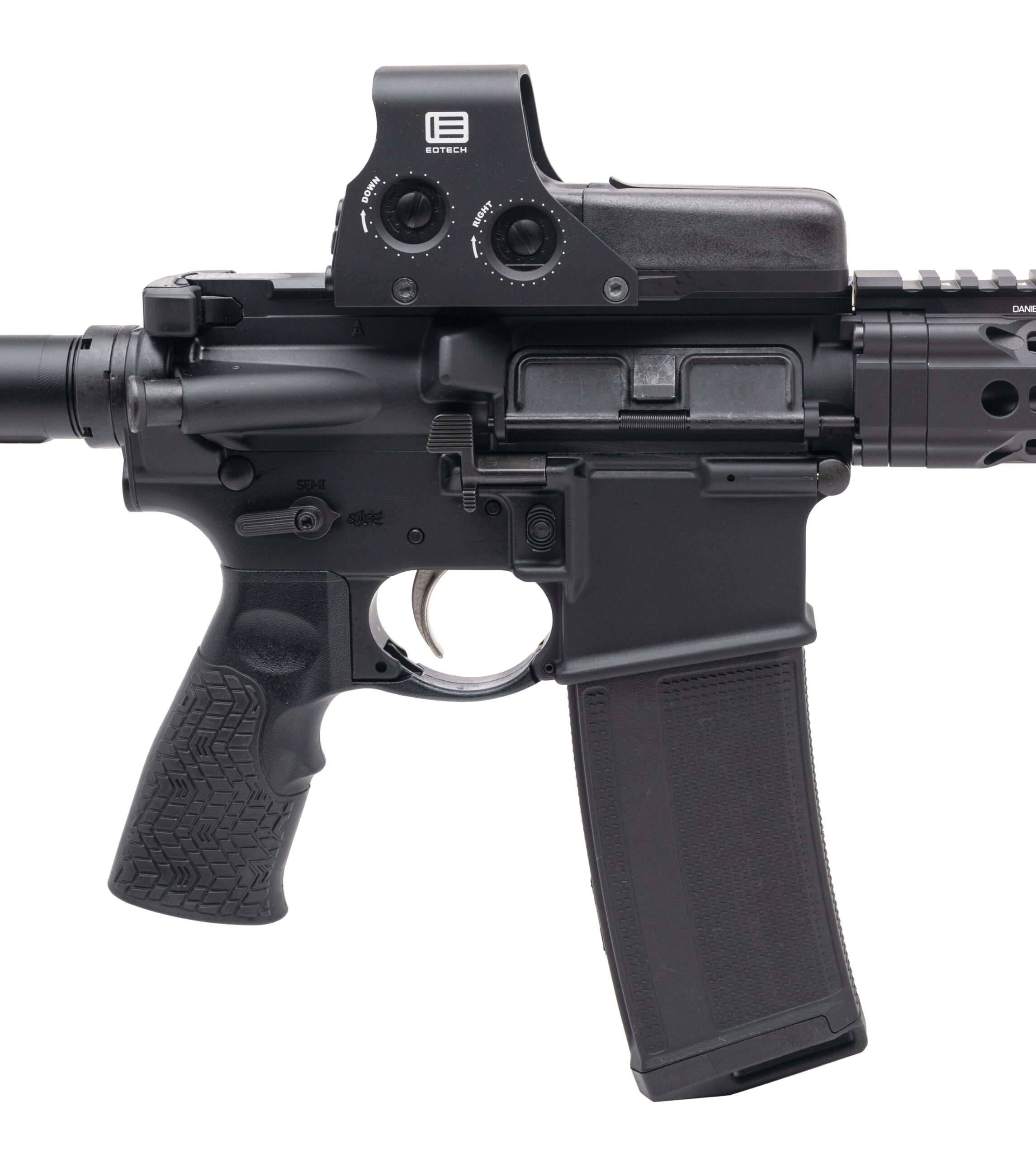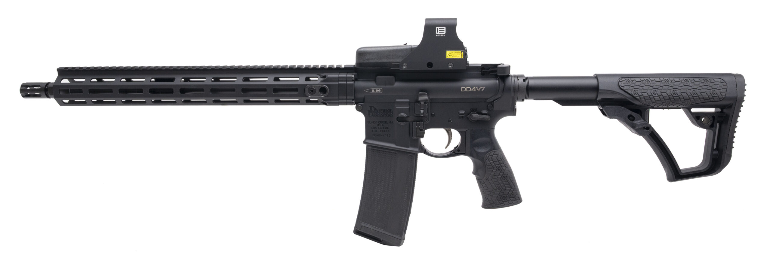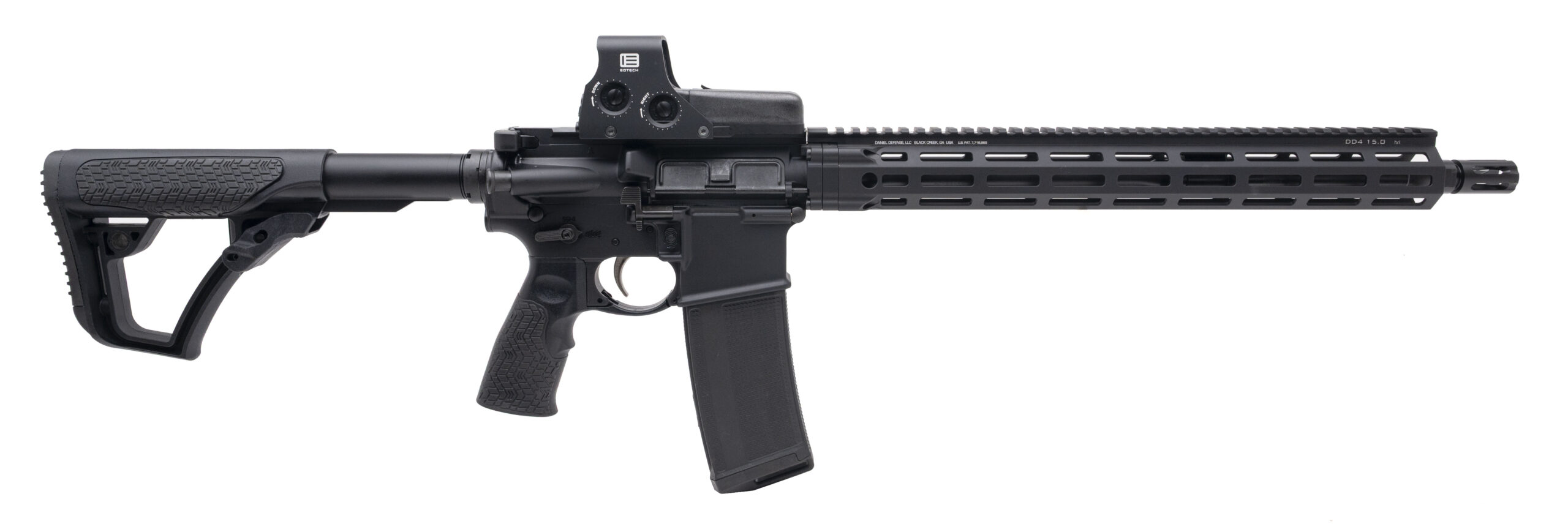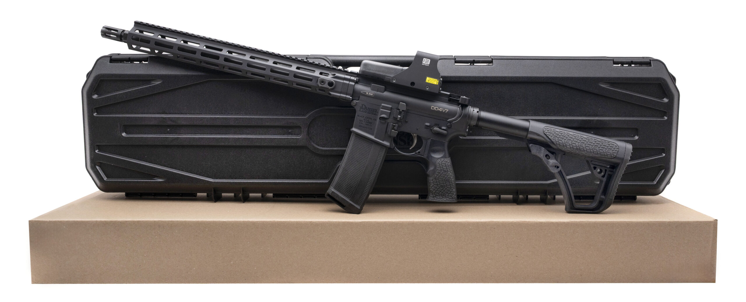 Semi-Automatic Tactical Rifle with a 16" Barrel w/DD Flash Hider. Anodized Finish, 15" M-LOK Handguard, DD Furniture, Eotech 512 HWS w/Red Circle Dot, Full Ambidextrous Controls, and an Enhanced Mil-Spec Trigger. Includes 1-32rd Magazine and Hardcase. NEW. UPC: 818773025164