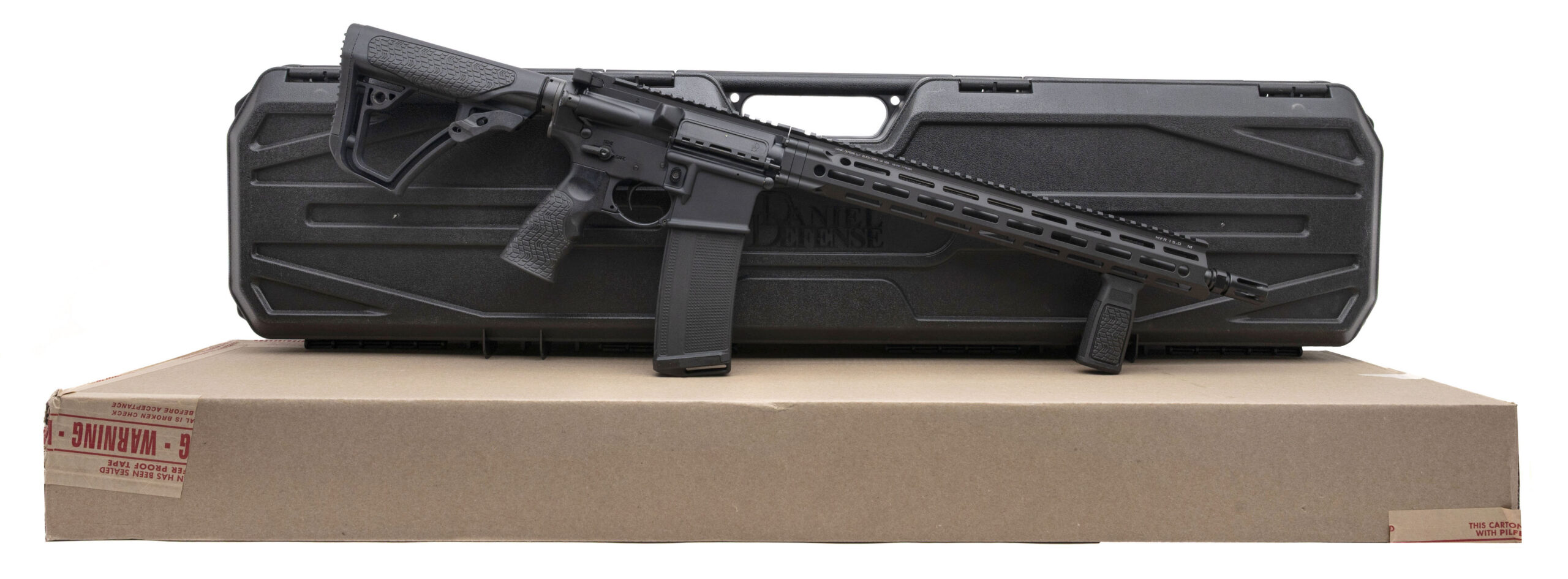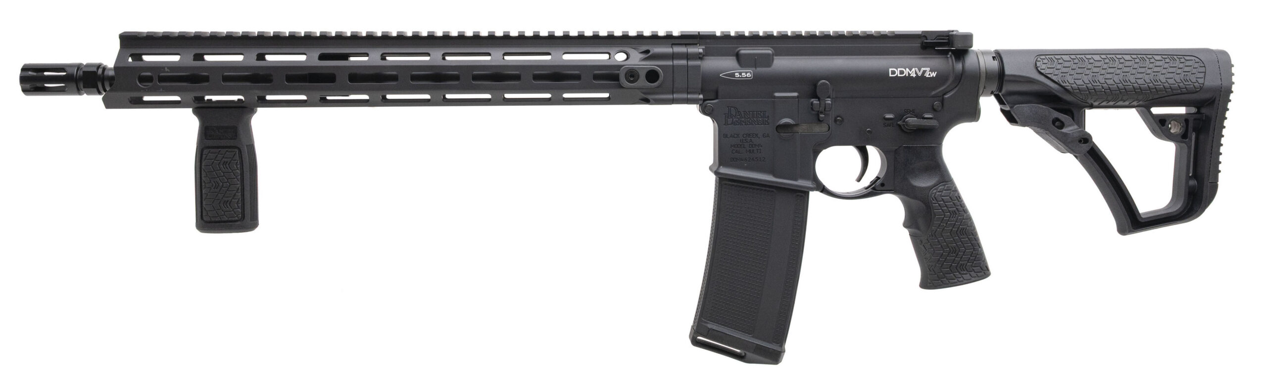 Semi-Automatic Tactical Rifle with a 16" Barrel w/DD Flash Hider. Anodized Finish, MFR 15" MLOK Handguard, DD Furniture, Vertical Grip, and a Flared Magwell. Includes 1-32rd Magazine. NEW. UPC: 815604018487