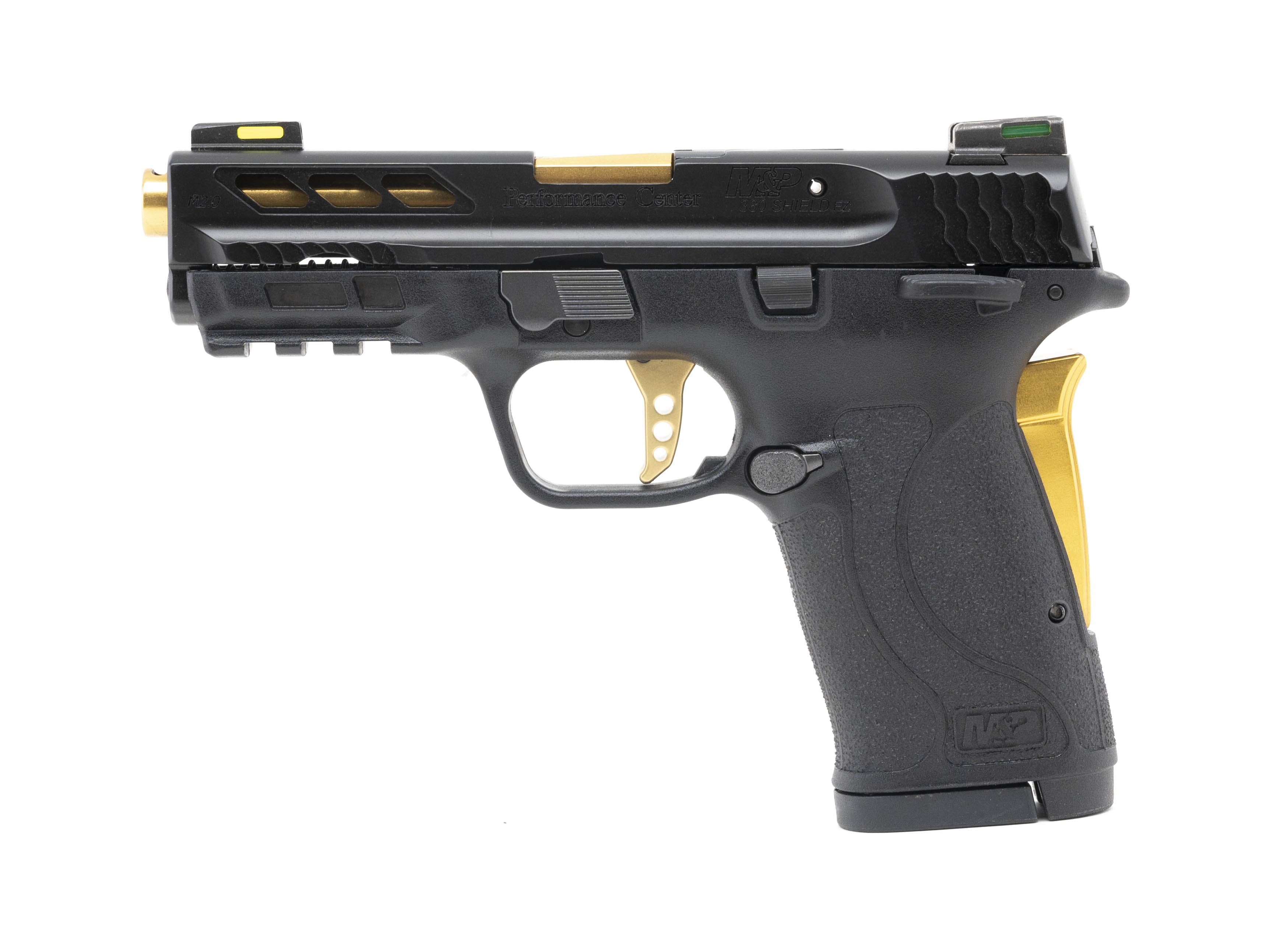 Performance Center Tuned Striker Fired Pistol with an 3.75" Gold Ported Barrel. Micro-Compact, Ambidextrous Manual Thumb-Safety, Armornite Finish, Polymer Frame, Gold Anodized Aluminum Grip Safety & Enhanced Trigger, Lightening Cut Slide, and Fiber Optic Sights. Includes 2-8rd Magazines. NEW. UPC: 022188879179