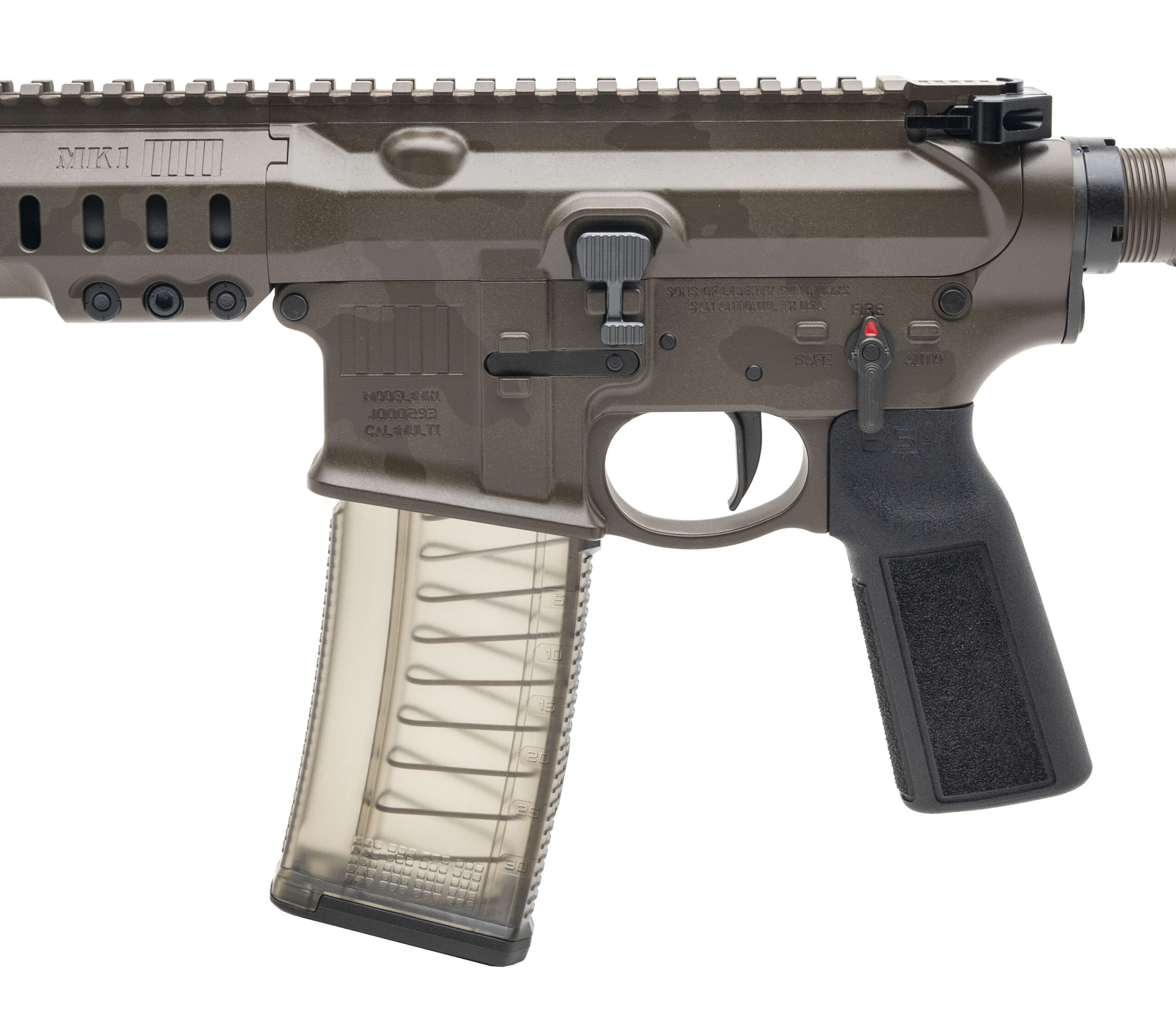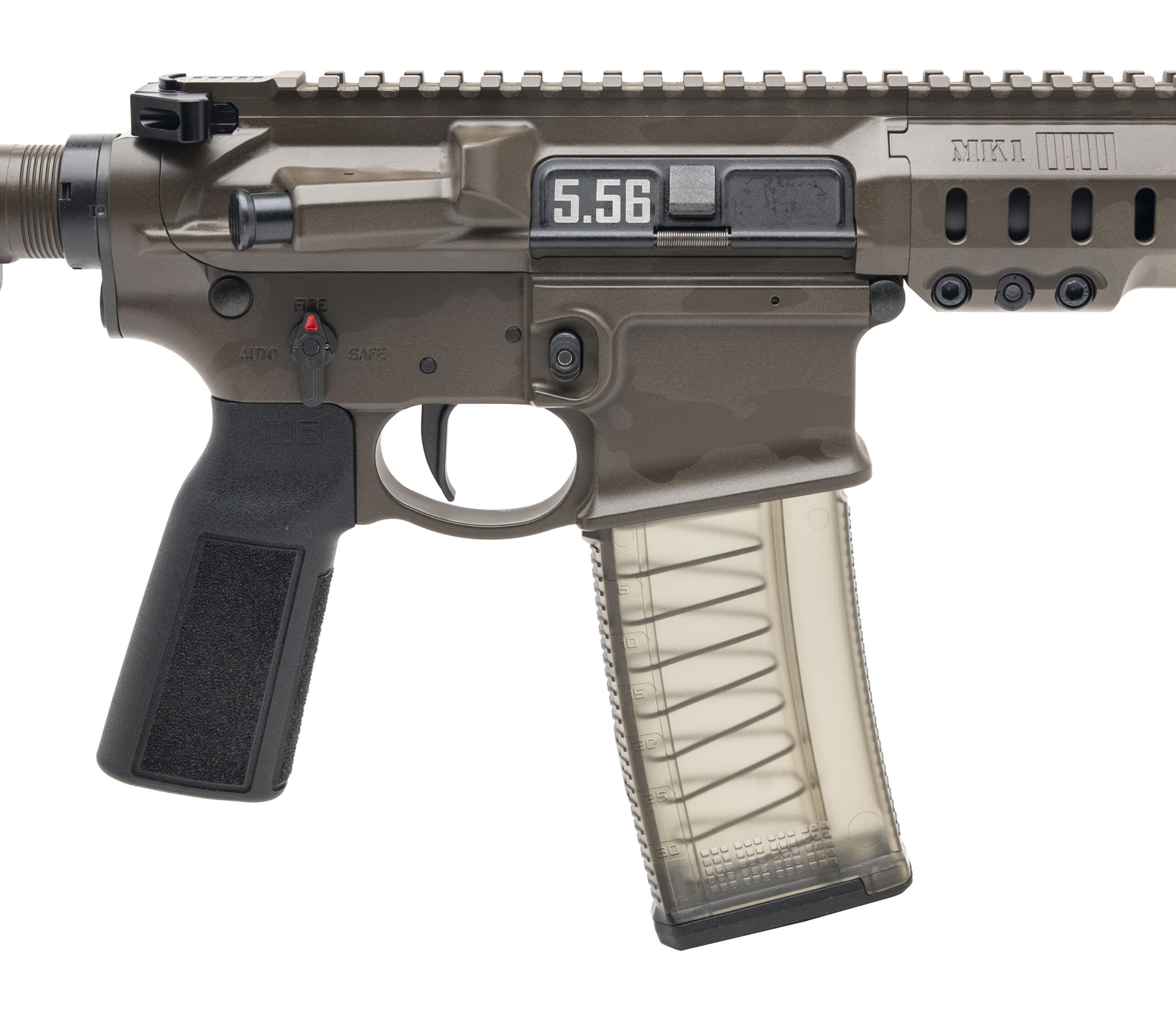 Semi-Auto Tactical Rifle with a 11.5" Barrel w/Huxwrk Threaded Muzzle Device. SBR, Textured MK1 MLOK Handguard, Badger Ambidextrous Safety, Liberty 2-Stage Trigger, Magpul MOE Collapsible Stock, B5 Systems Pistol Grips, and MK1 Camouflage Cerakote Finish. Includes 1-30rd Magazine, and Soft Carry Bag. NEW. SKU: MK1-CAR-SBR-11.5-556 (CLASS III ITEM)(ALL NFA RULES APPLY)