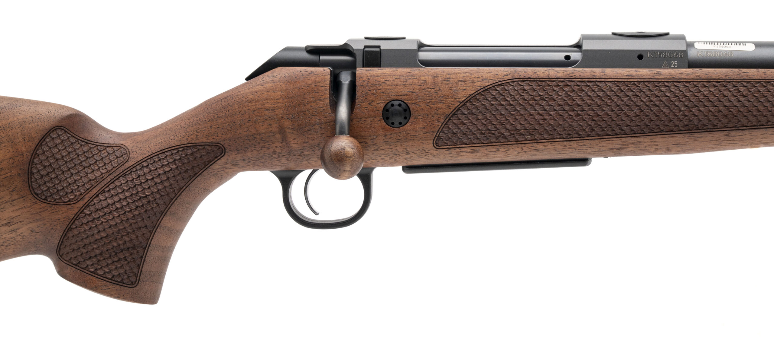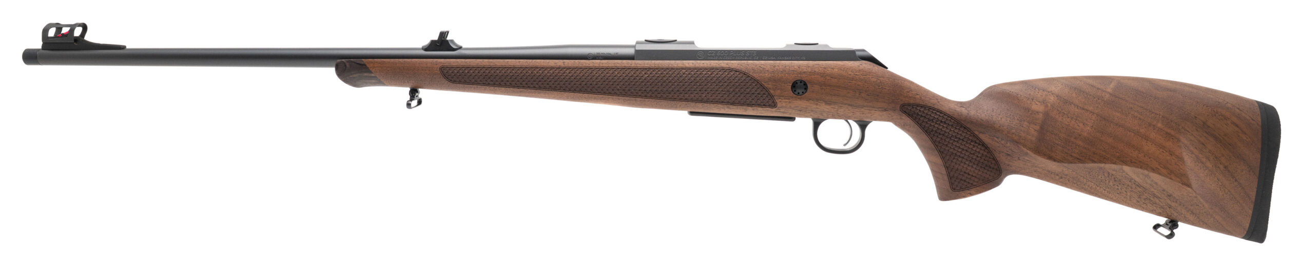 Bolt-Action Hunting Rifle with a 24" Threaded Barrel. Hooded Fiber-Optic Front Sight, Remington 700 Pattern Drilled & Tapped Receiver, Right Hand Palm Swell, Matte Black Finish, and Checkered Walnut Lux Stock. Includes 1-3rd Magazine. NEW. UPC: 806703073095