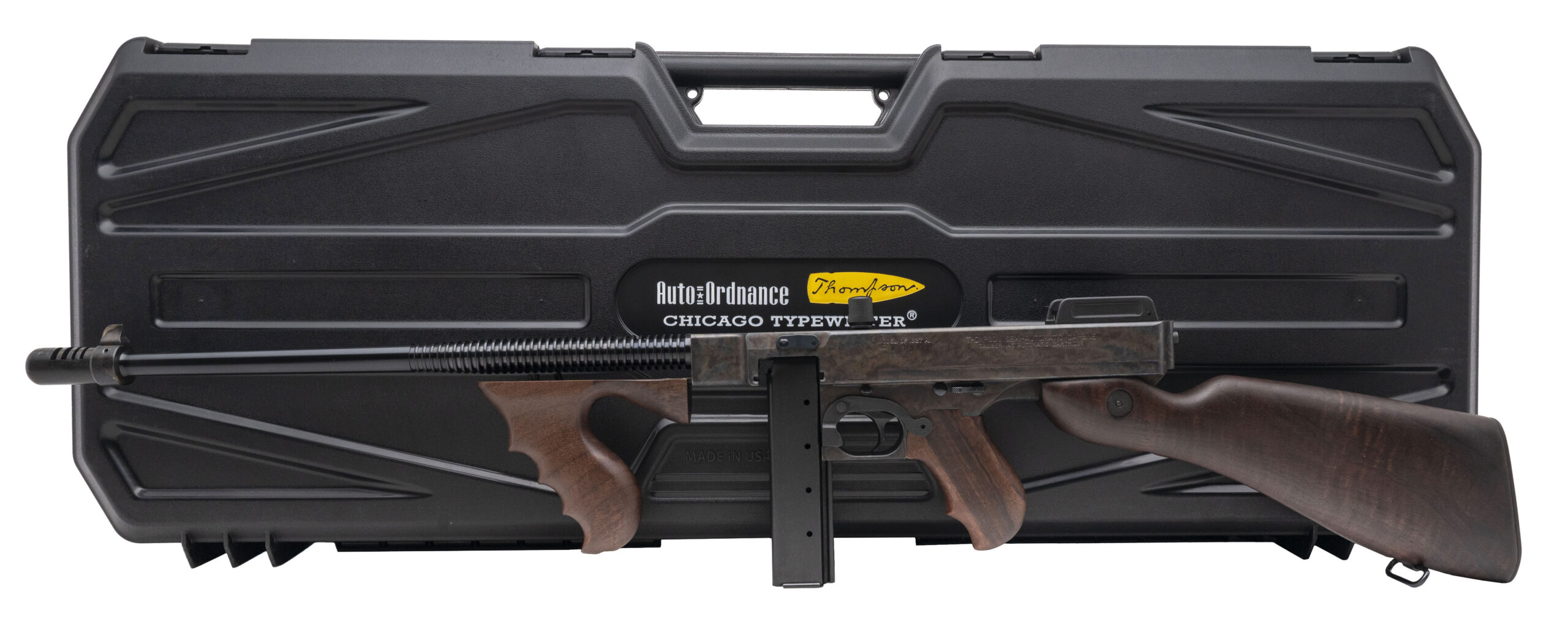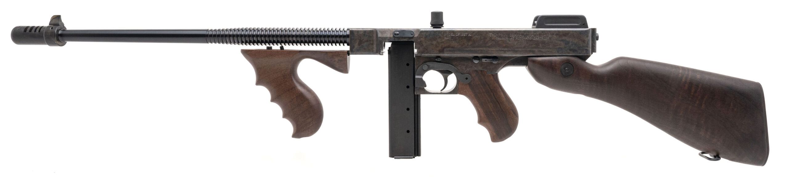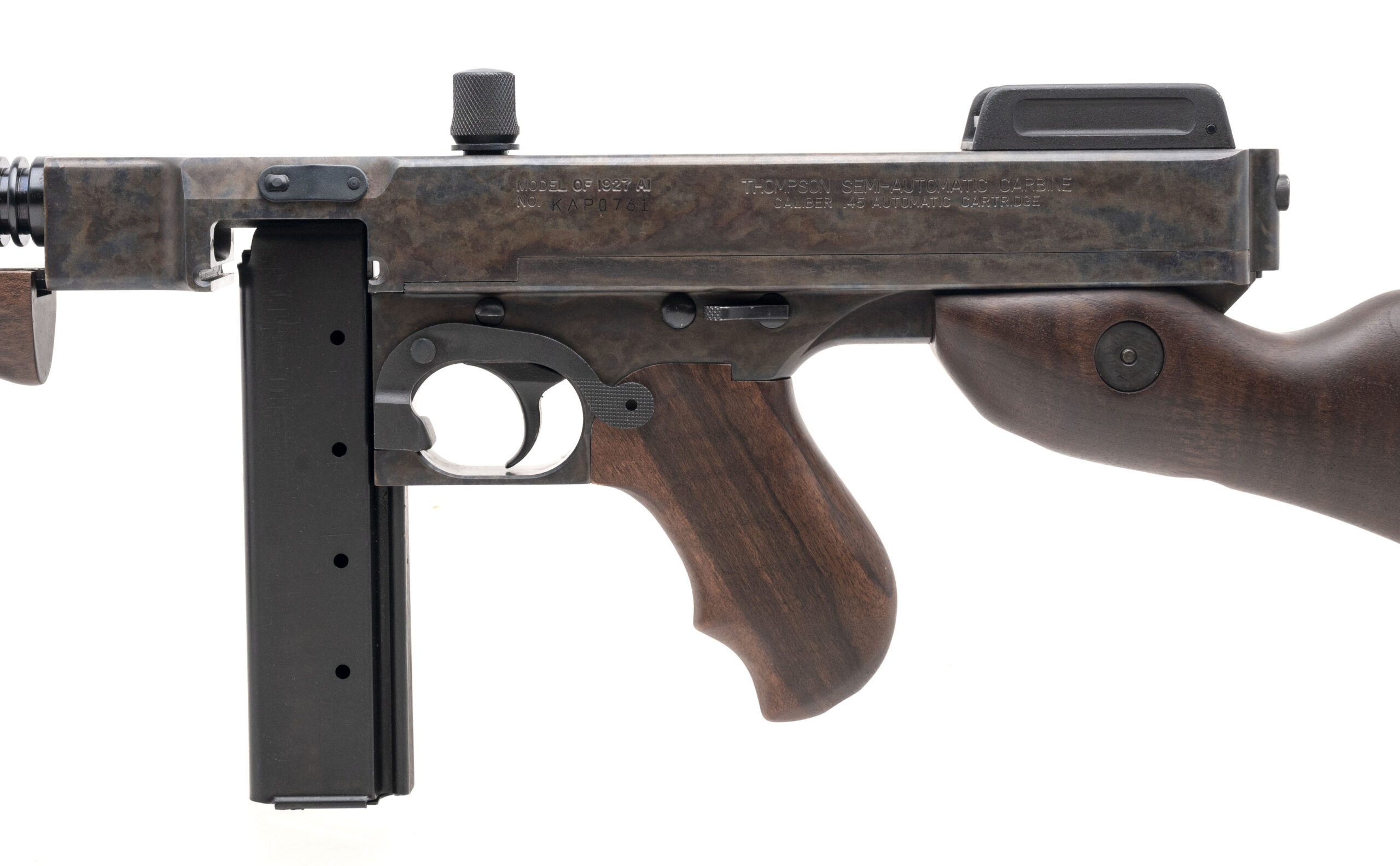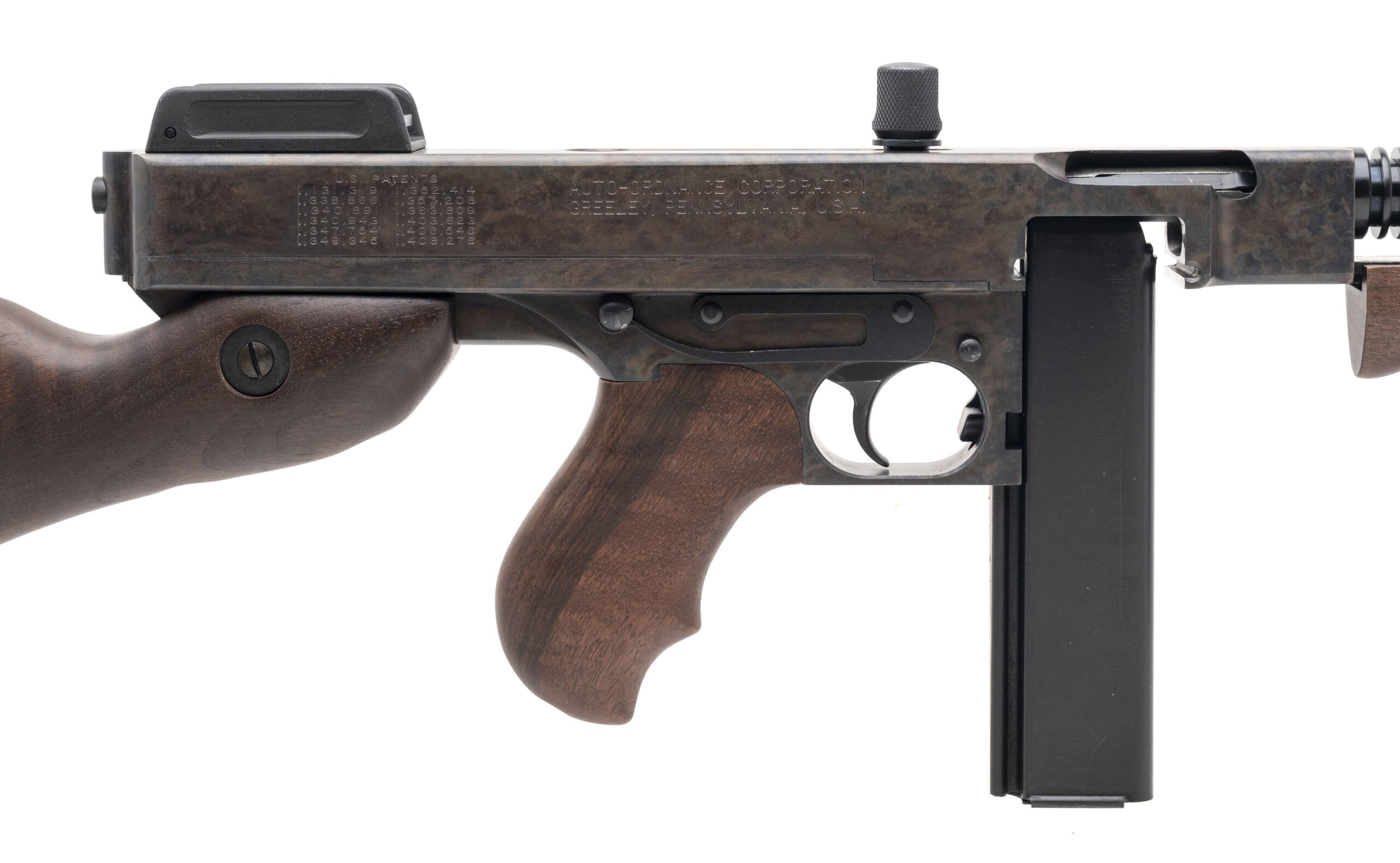 Auto-Ordnance M1927A1 Deluxe Carbine .45 ACP with an 16.5" barrel (with compensator 18"). Case Hardened with clear protective coat and Walnut fixed stock and vertical foregrip. 20rd Stick Magazine. NEW. UPC: 602686421935